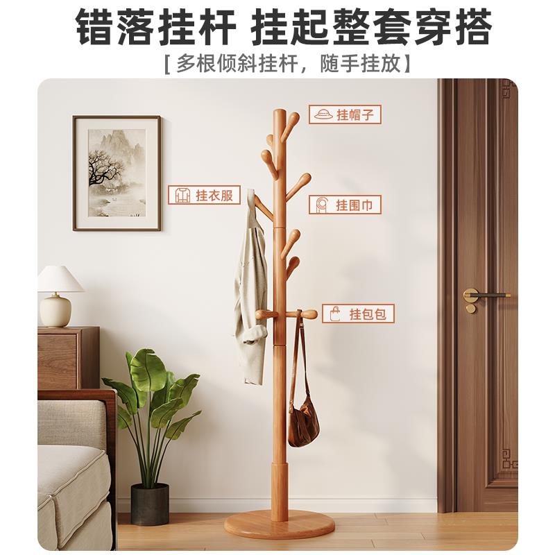 实木衣帽架落地衣架家用卧室树形挂衣杆客厅角落立式挂衣架子简易