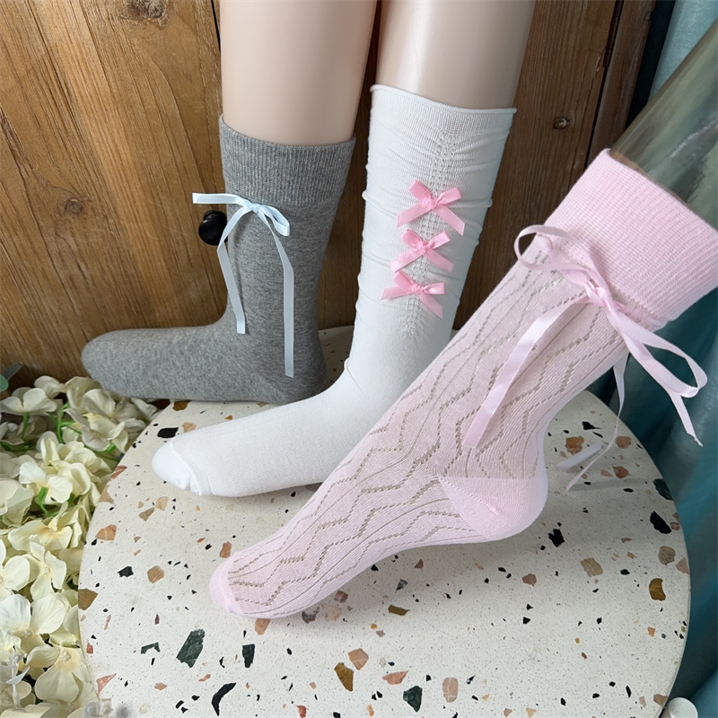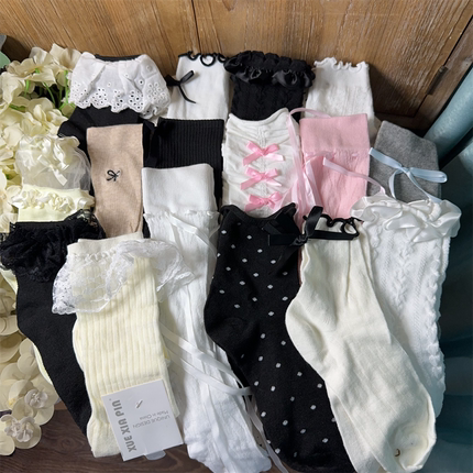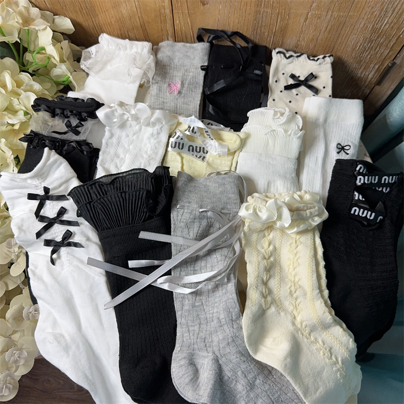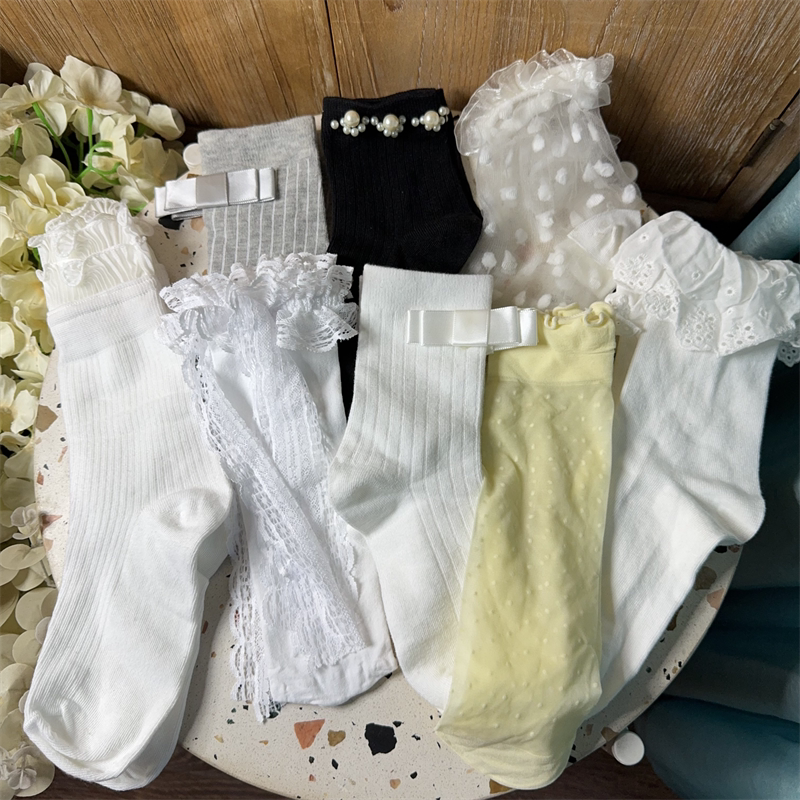 5双女士花边蝴蝶结装饰袜子瑕疵杂款处理