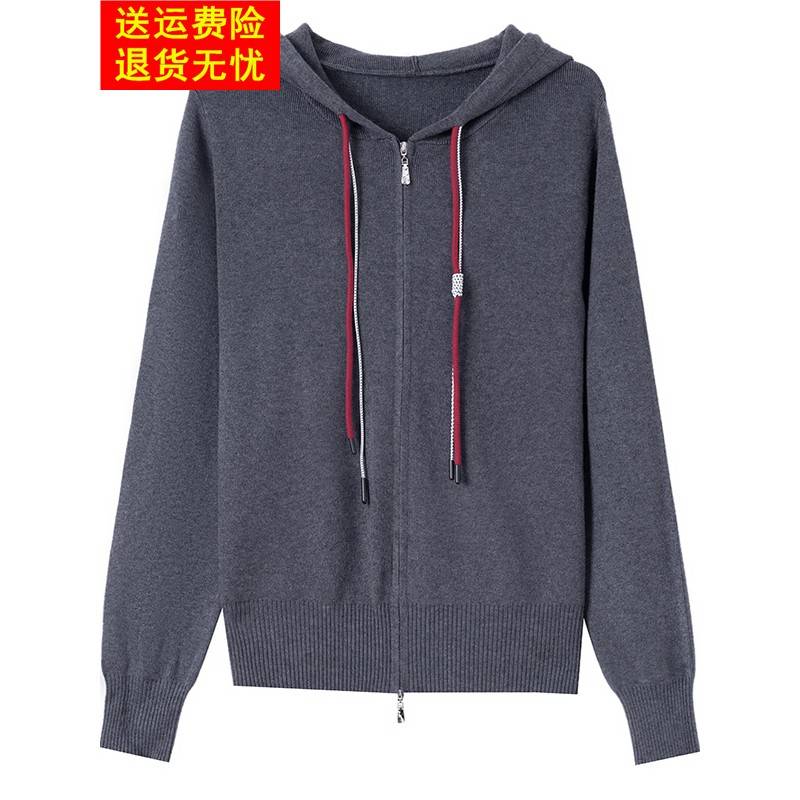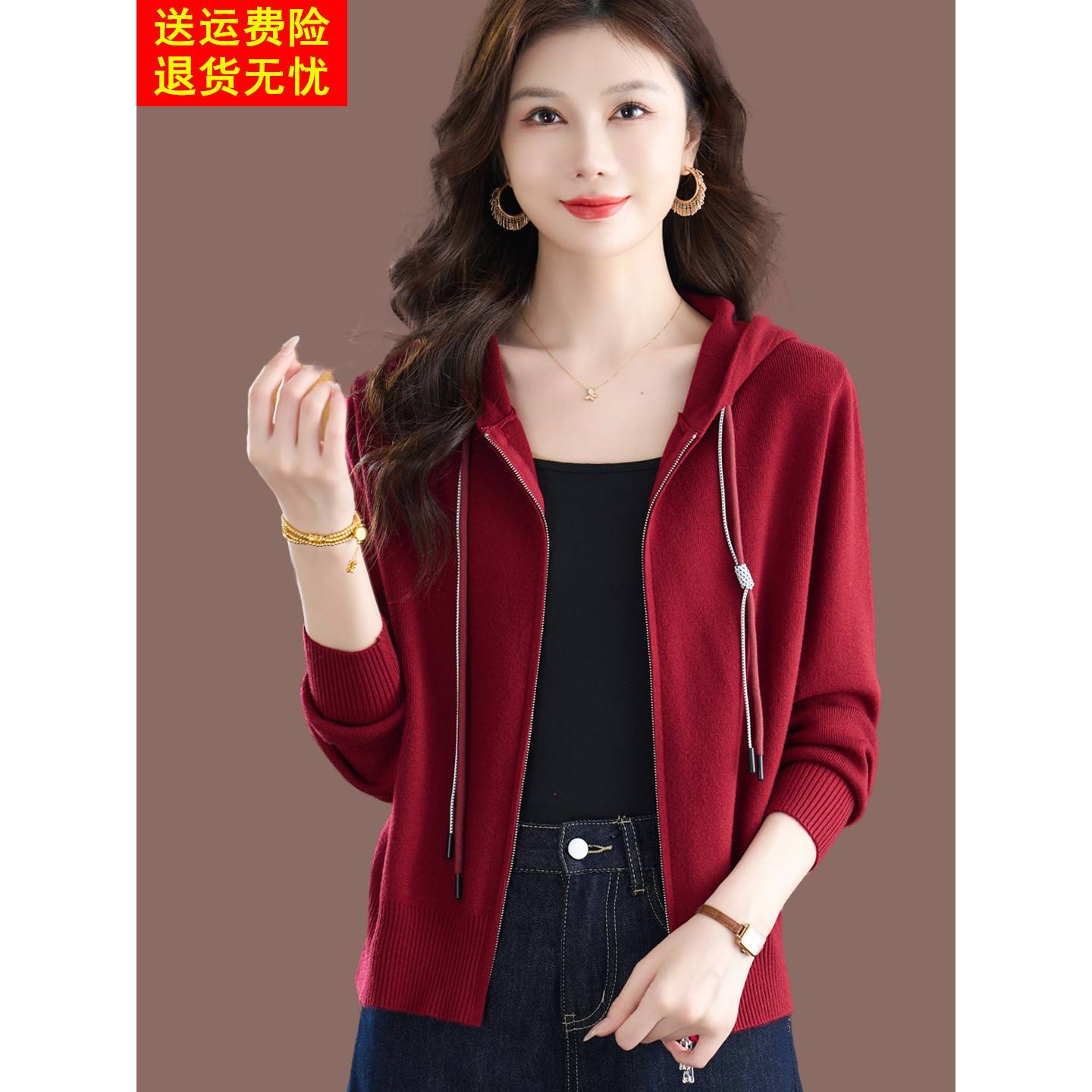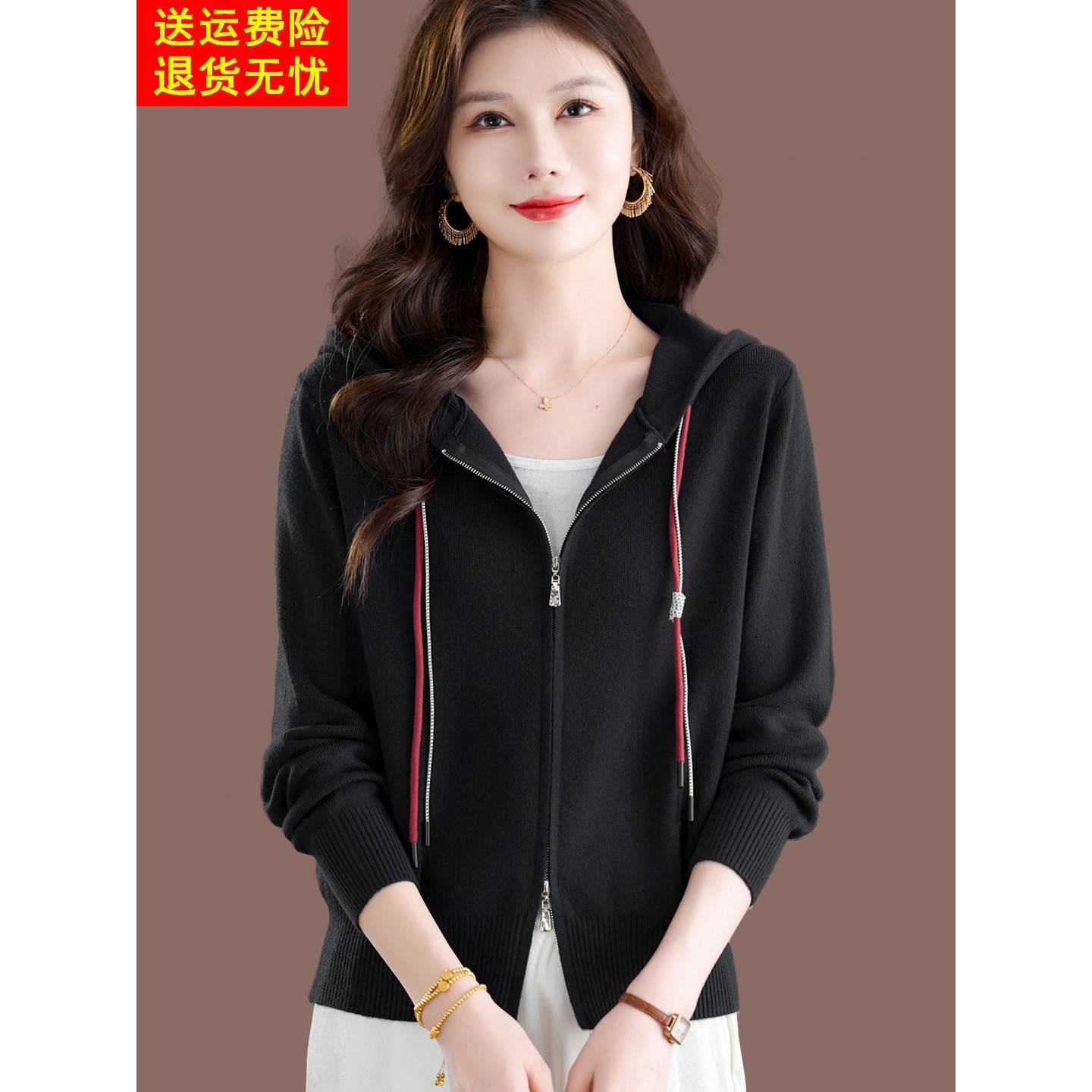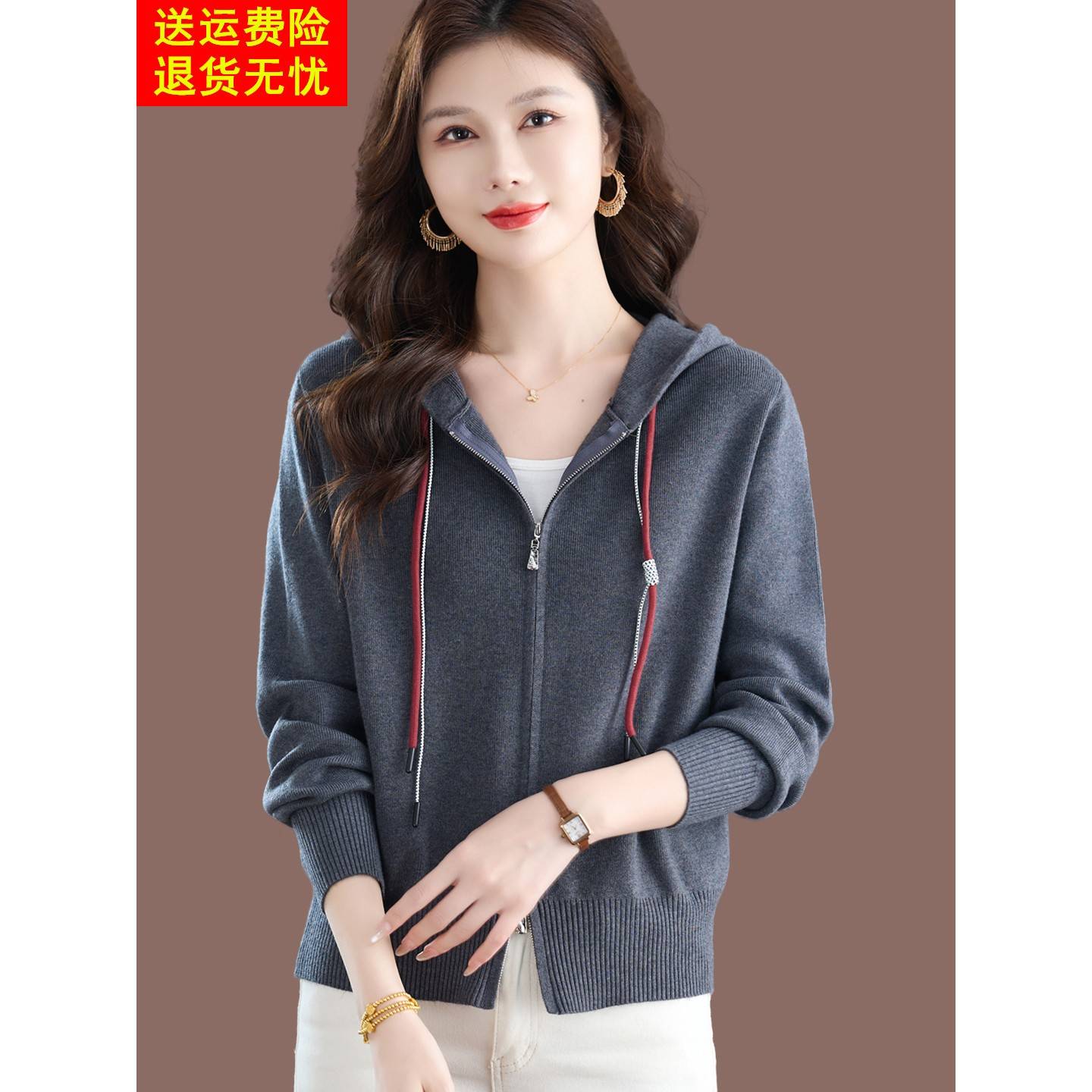 连帽拉炼羊毛针织开衫女外搭2025春秋装新款洋气毛衣外套上衣披肩