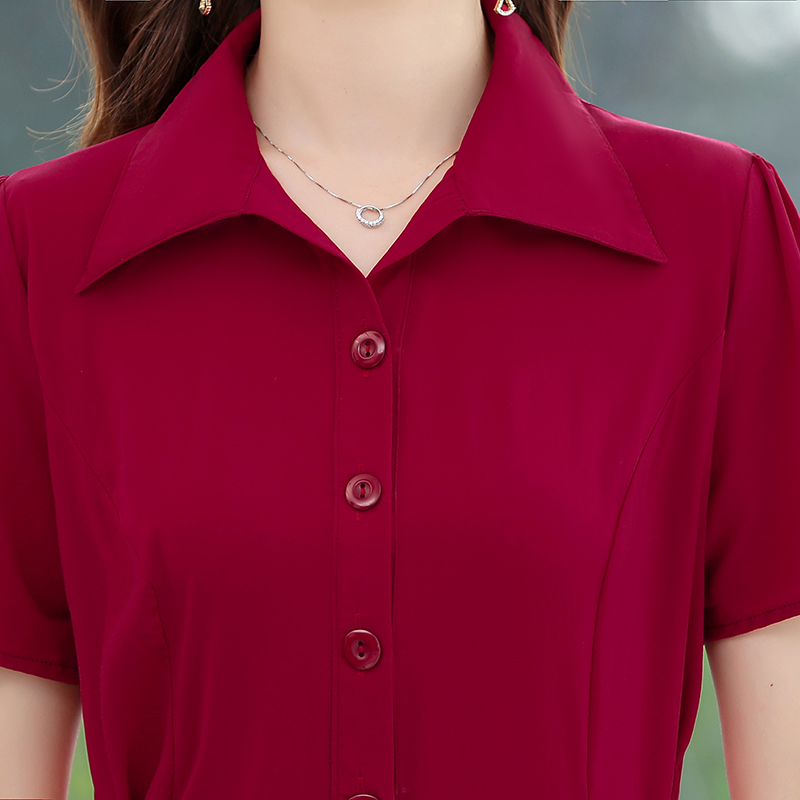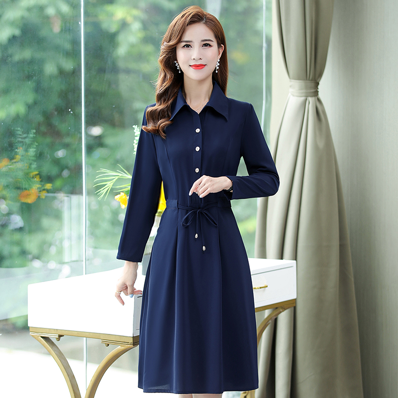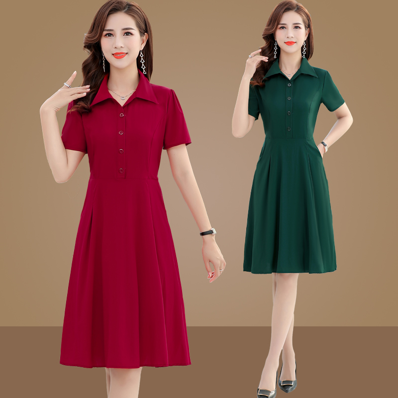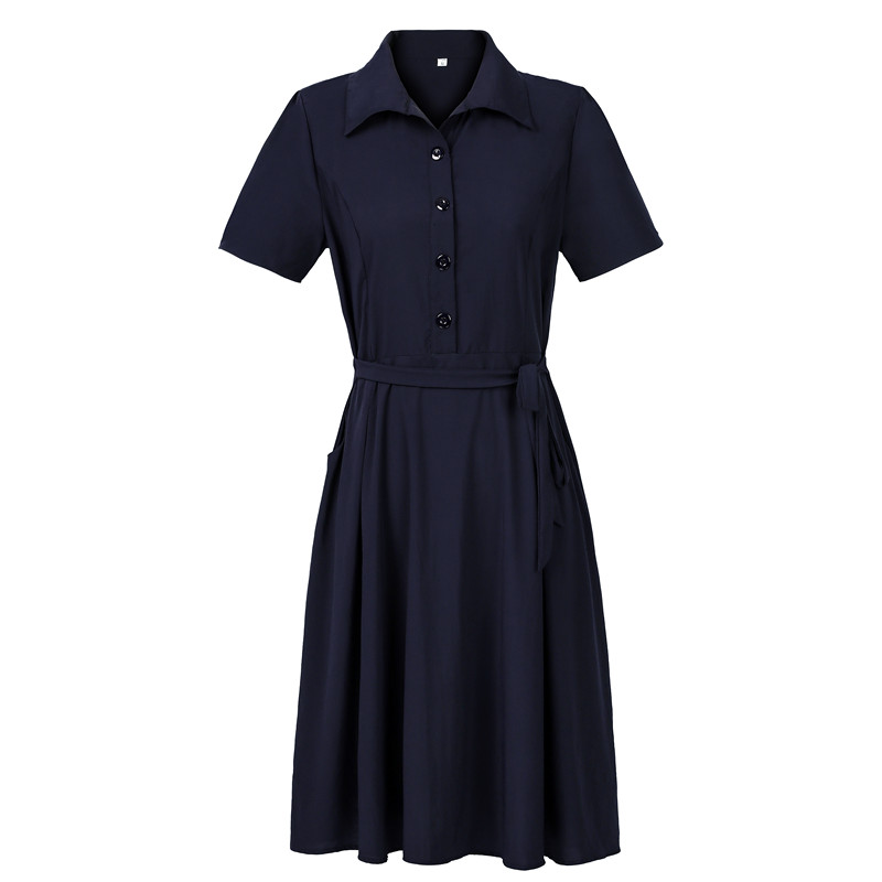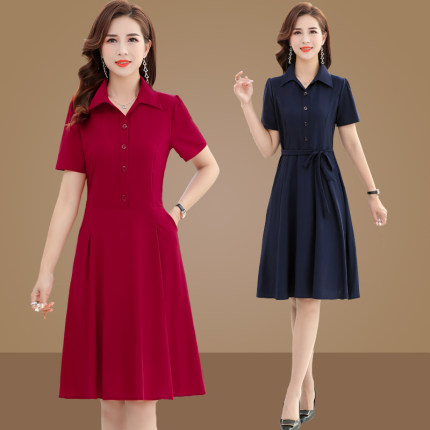 妈妈夏天穿的莫代尔棉质连衣裙透气中老年女夏装翻领腰带裙有口袋