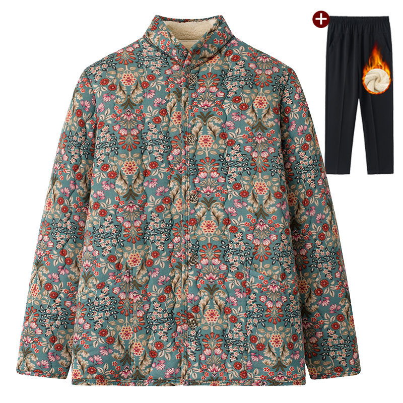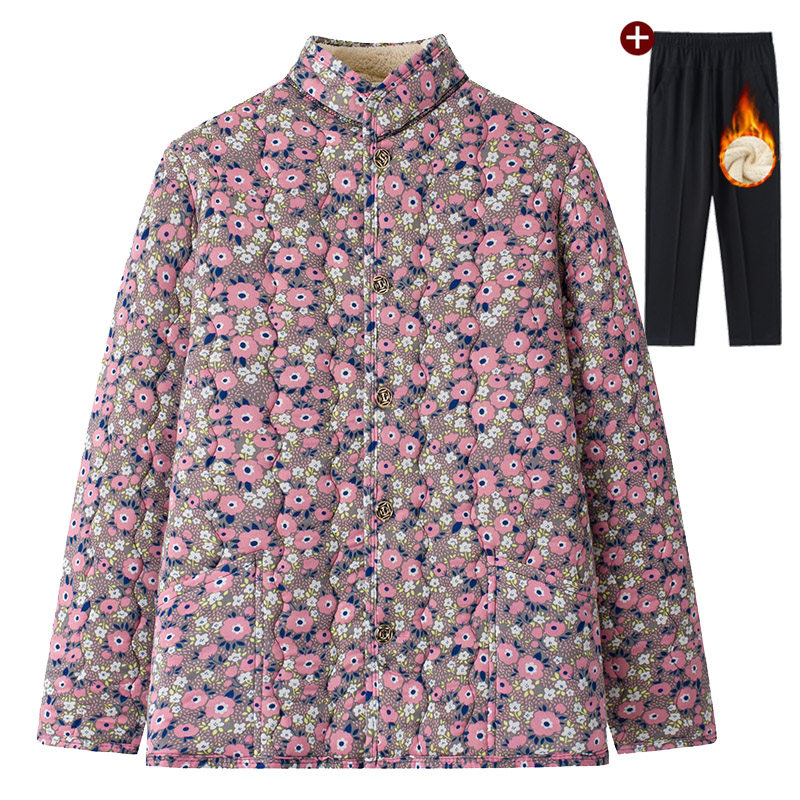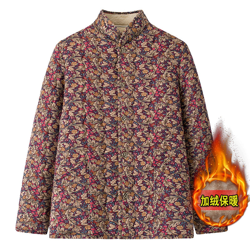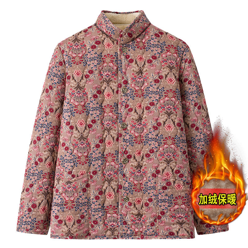 冬装中老年女妈妈棉衣加绒保暖棉袄加厚外套奶奶棉服老奶奶花衣服