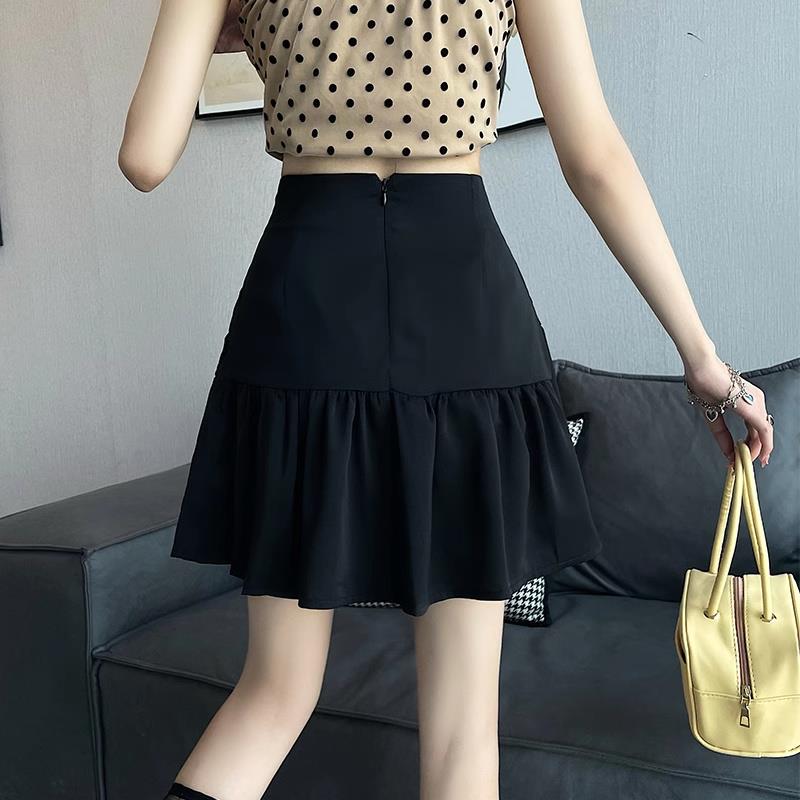 黑色百褶裙半身裙女夏季2025新款高腰显瘦大码防走光褶皱鱼尾短裙