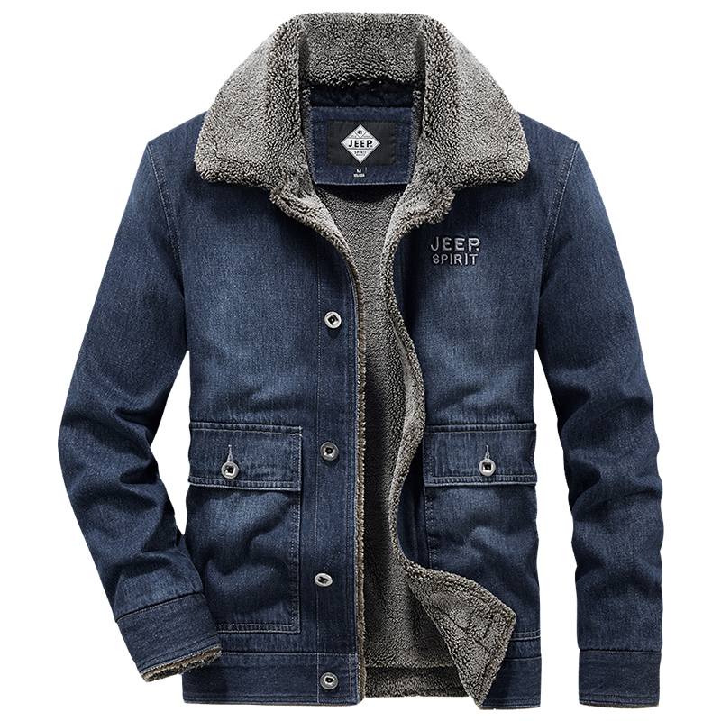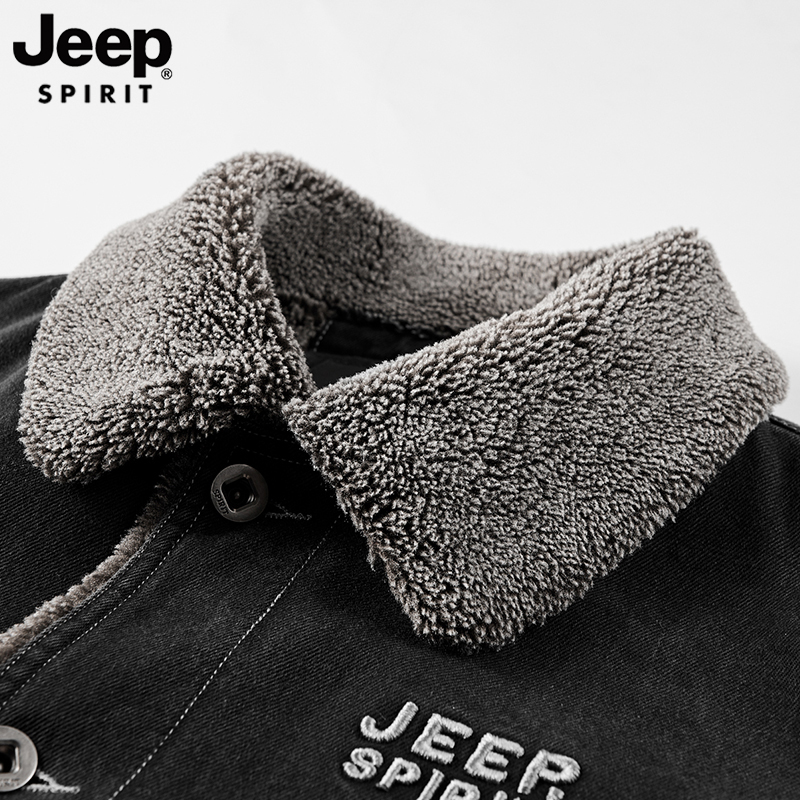 吉普JEEP羊羔绒牛仔外套男冬季加绒加厚中年爸爸棉衣翻领休闲夹克