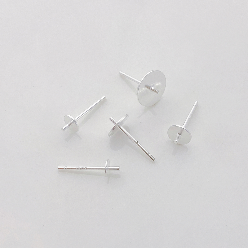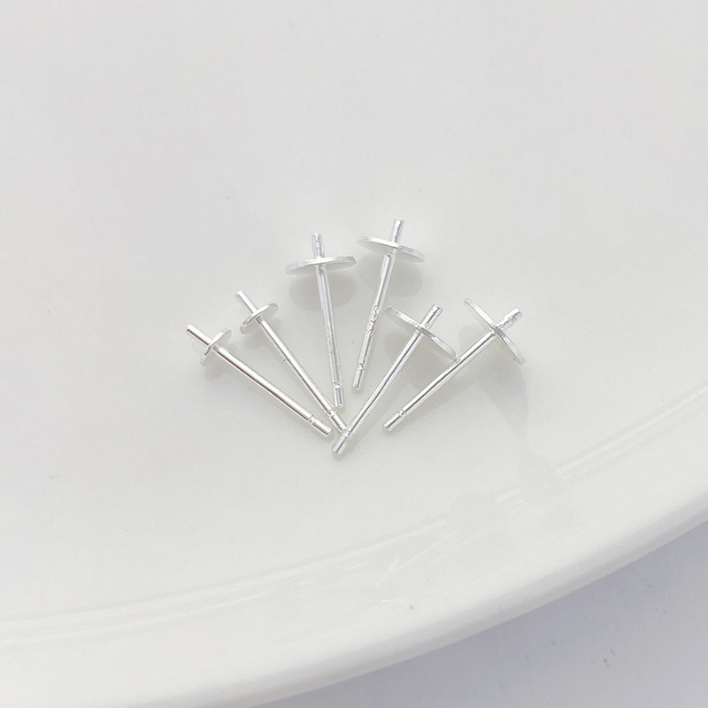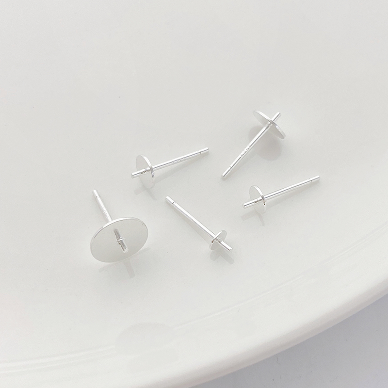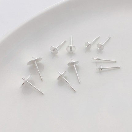 925纯银半孔珍珠托平托耳针耳钉托珠盘手工diy配件空托粘珍珠配件