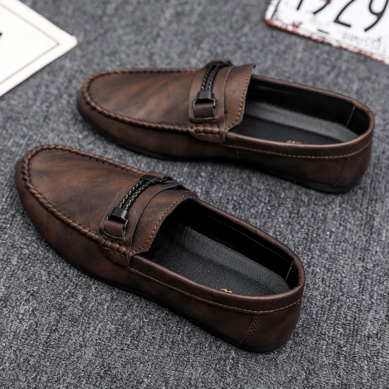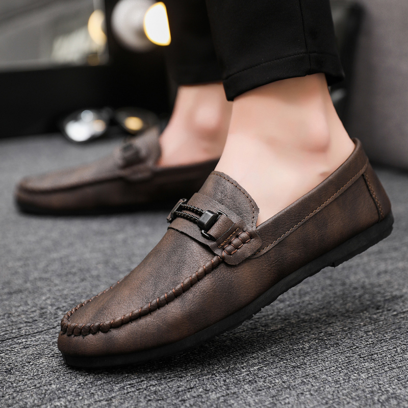 豆豆男鞋秋季英伦风百搭男士商务休闲皮鞋一脚蹬开车软底乐福潮鞋