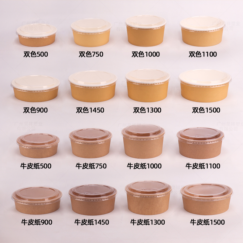 双色纸碗一次性外卖打包餐盒圆形饭盒沙拉碗水果捞可加印logo定制