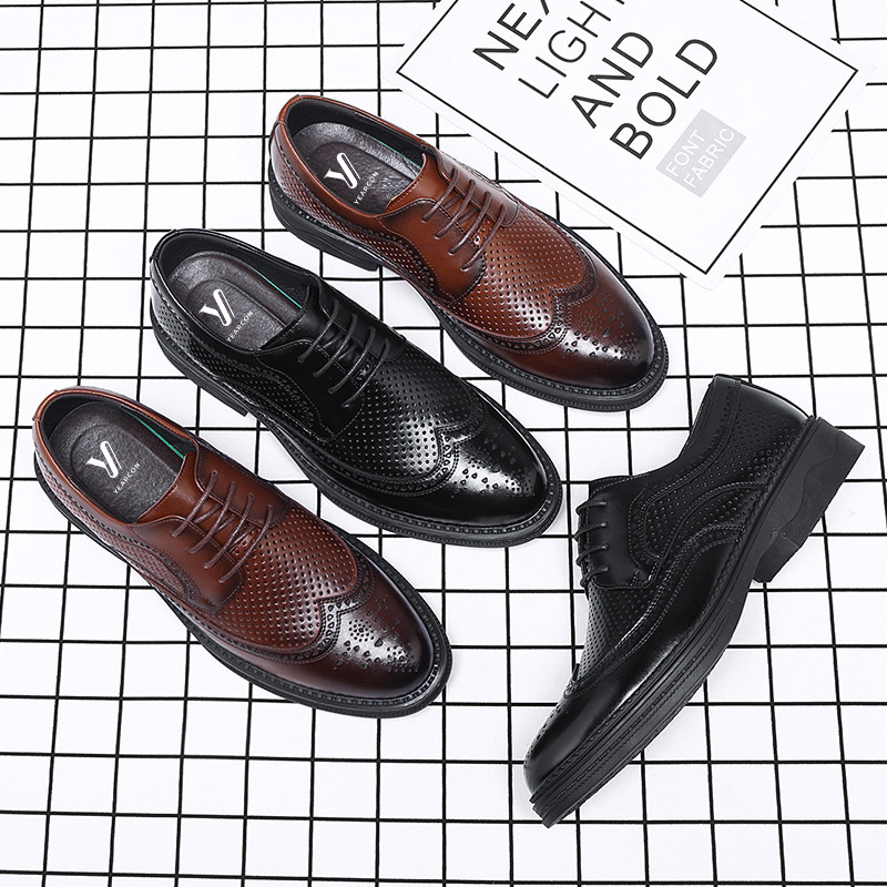 意尔康男士皮鞋夏季镂空透气商务正装真皮布洛克英伦潮流皮凉鞋男