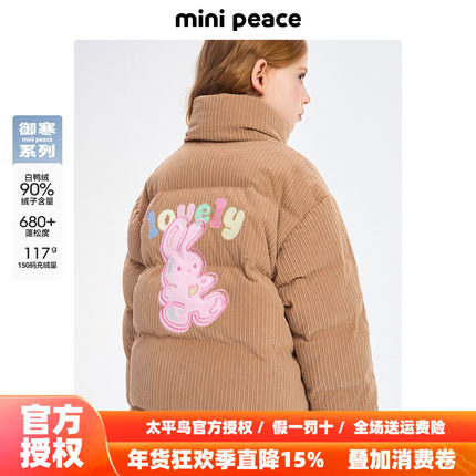 【御寒系列】太平鸟童装女童羽绒服冬新款灯芯绒保暖羽绒厚外套