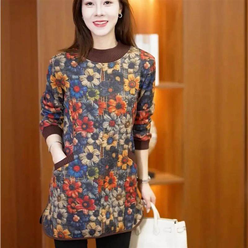 刻晴服饰秋.冬加绒加厚长袖T恤打底衫时尚洋气宽松女士保暖卫衣
