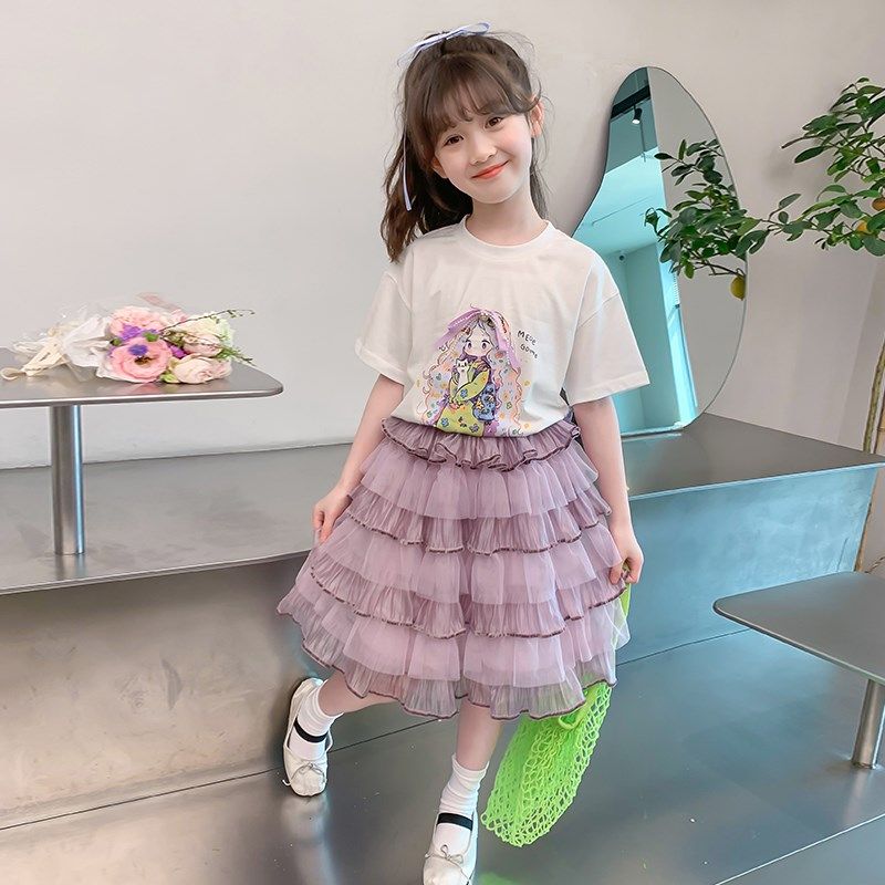 女童夏装套装2024新款儿童网红洋气时髦半身裙两件套夏季女孩套裙