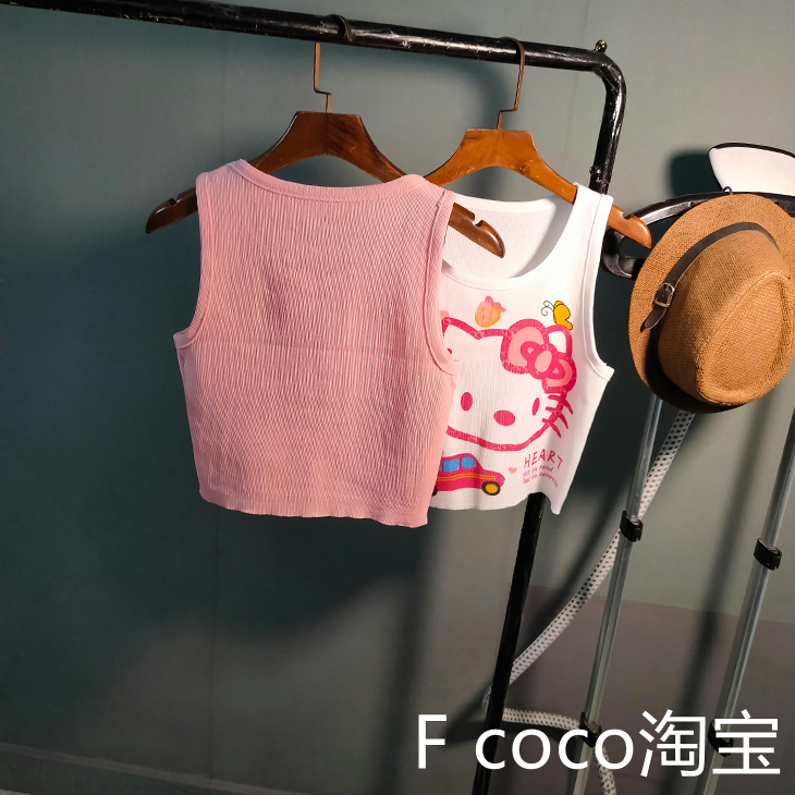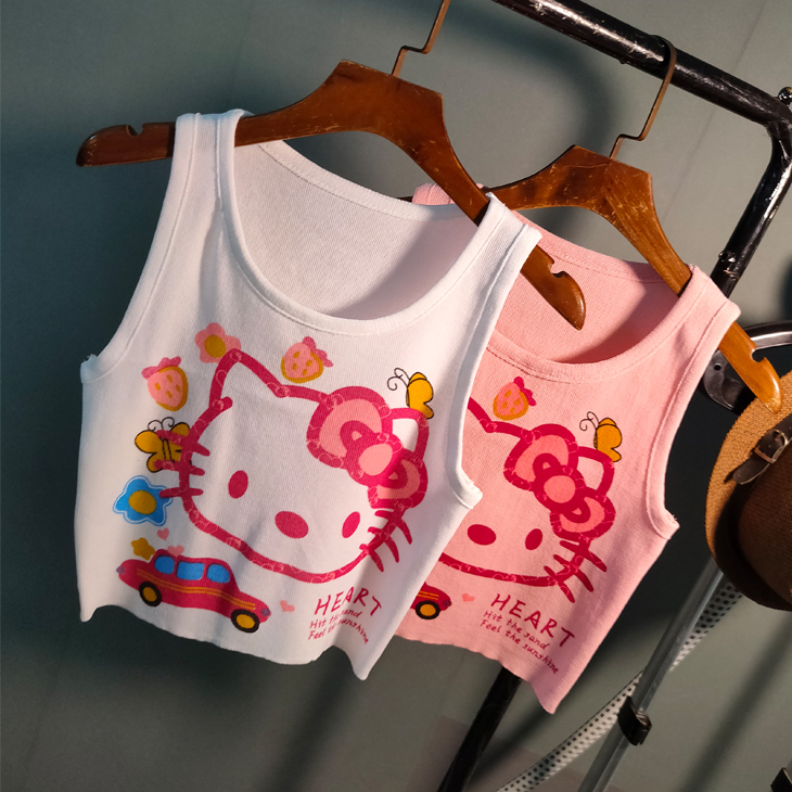 元气少女HelloKitty印花背心美背女2025夏季新款猫咪露脐抹胸外贸