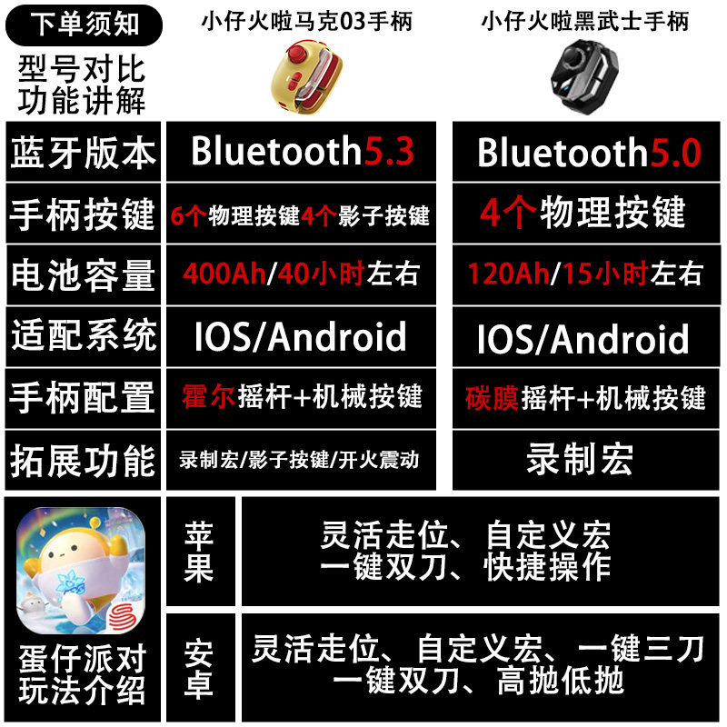 小仔火啦2025新款蛋仔派对神器一键三刀双刀外设手游手柄一键高抛低抛安卓游戏走位神器苹果平板自定义宏四刀