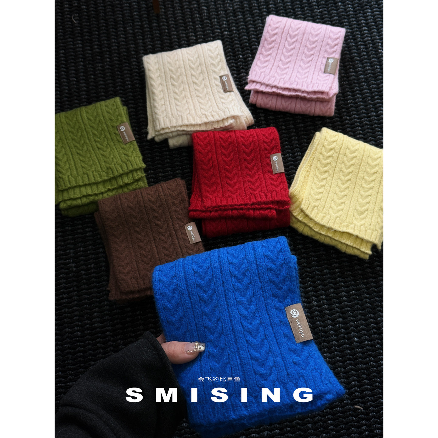 韩版克莱茵蓝针织围巾女冬季保暖百搭氛围感围脖轻奢高级感护颈潮