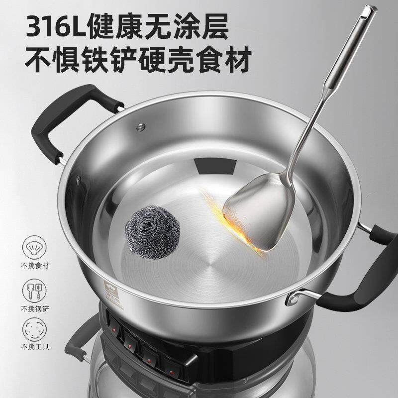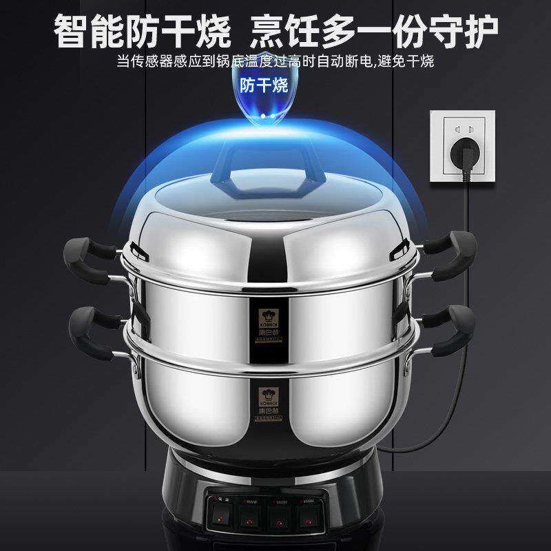 康巴赫电炒锅多功能料理锅煮炒煎一体316L不锈钢家用炒锅电蒸锅