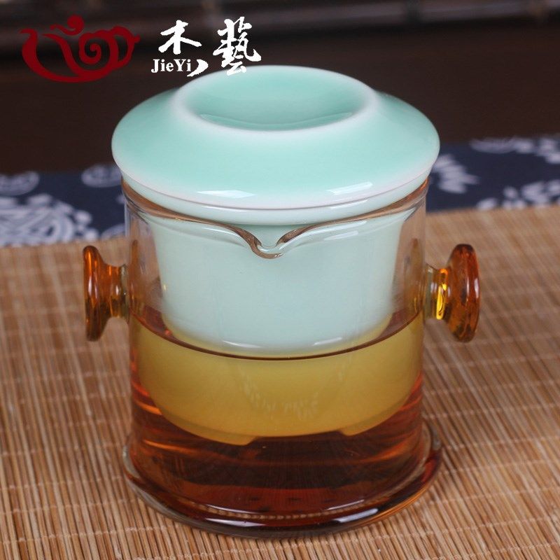 青花瓷红茶茶具套装 玻璃双耳杯壶泡茶器陶瓷功夫花茶 旅行茶具