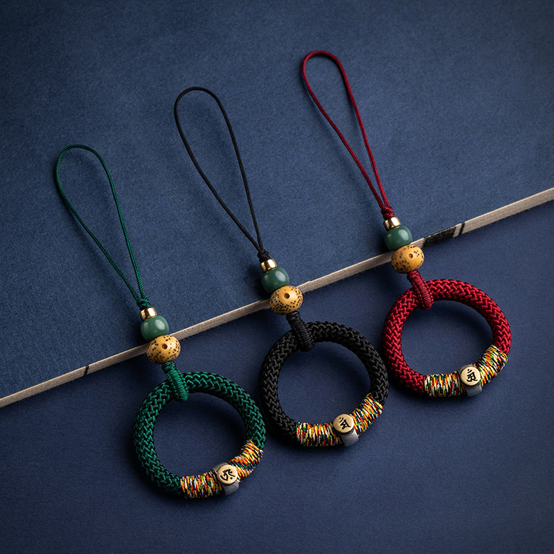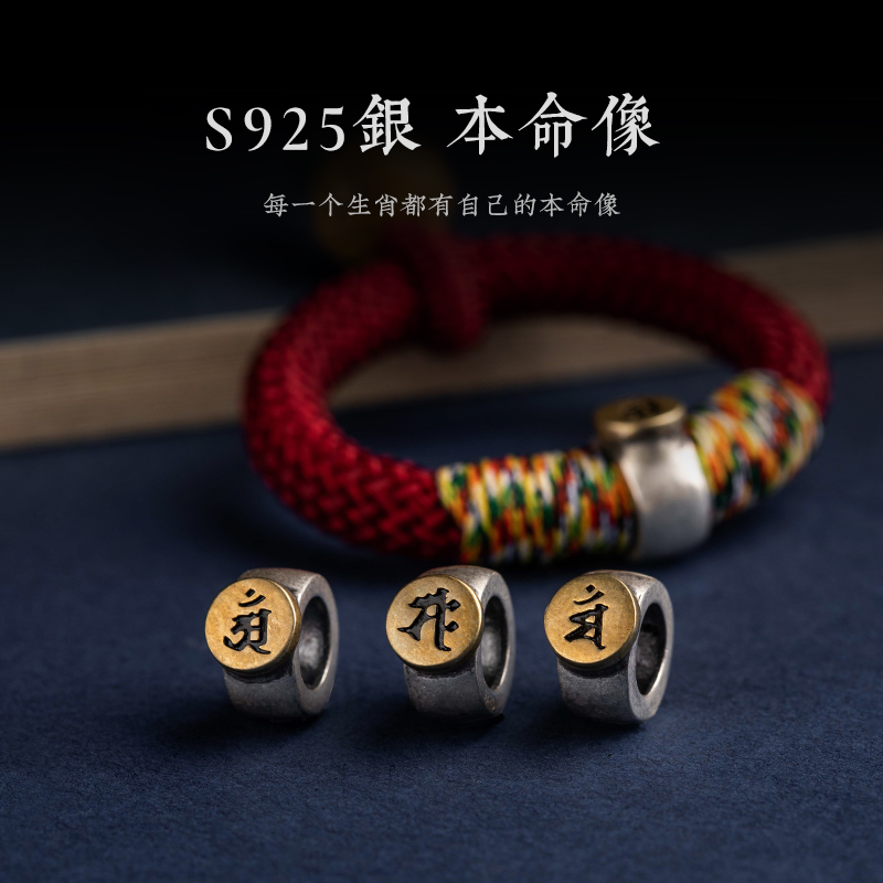 纯银八大生肖本命像手机挂绳本命年指环扣编织手机链女复古风U盘包包吊坠红色高级挂件男士手机绳精致挂饰