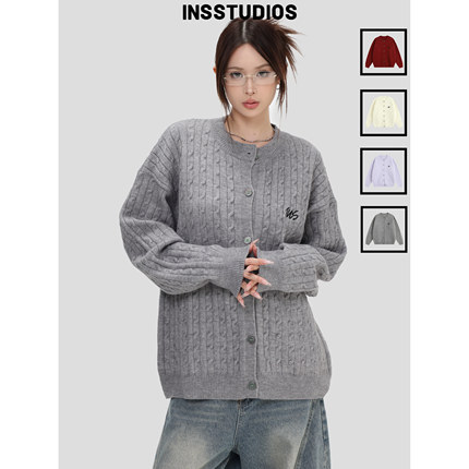 INSstudios 国潮牌美式「绞花麻花针织衫」毛衣宽松圆领开衫外套
