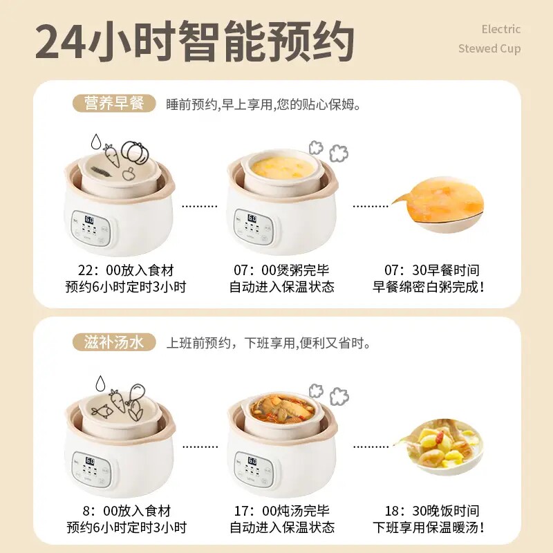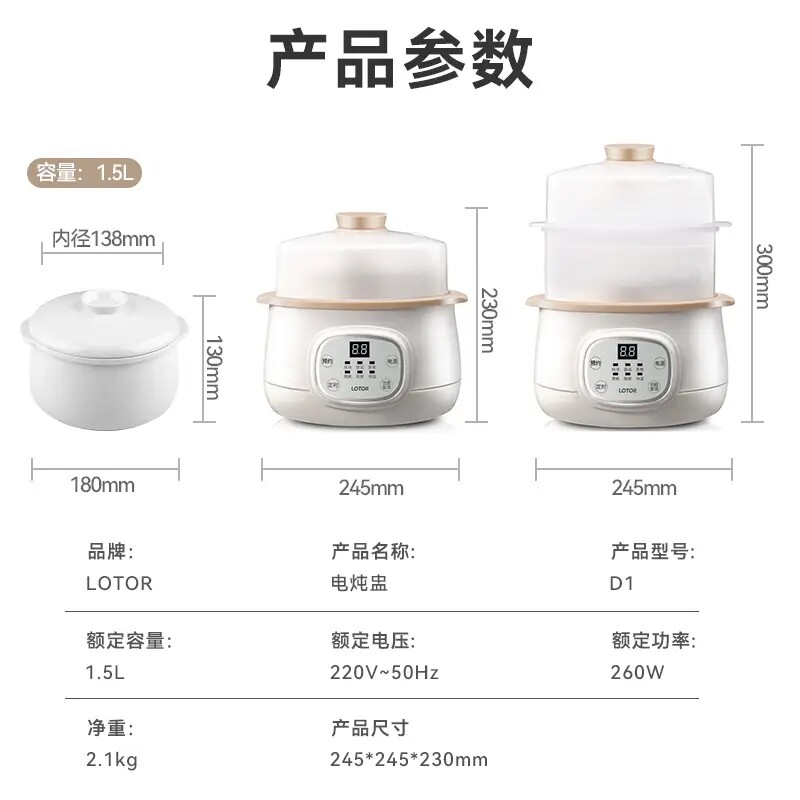 LOTOR小浣熊电炖盅1.5L隔水炖家用全自动煮粥煲汤炖汤电炖锅蒸锅