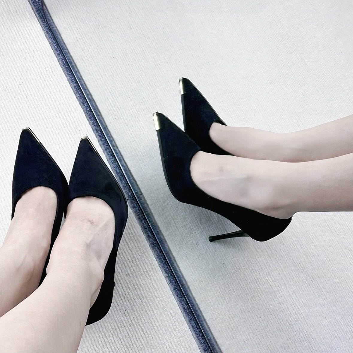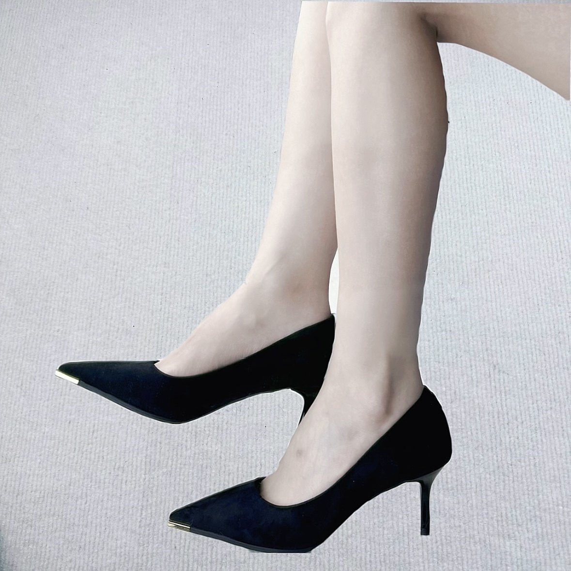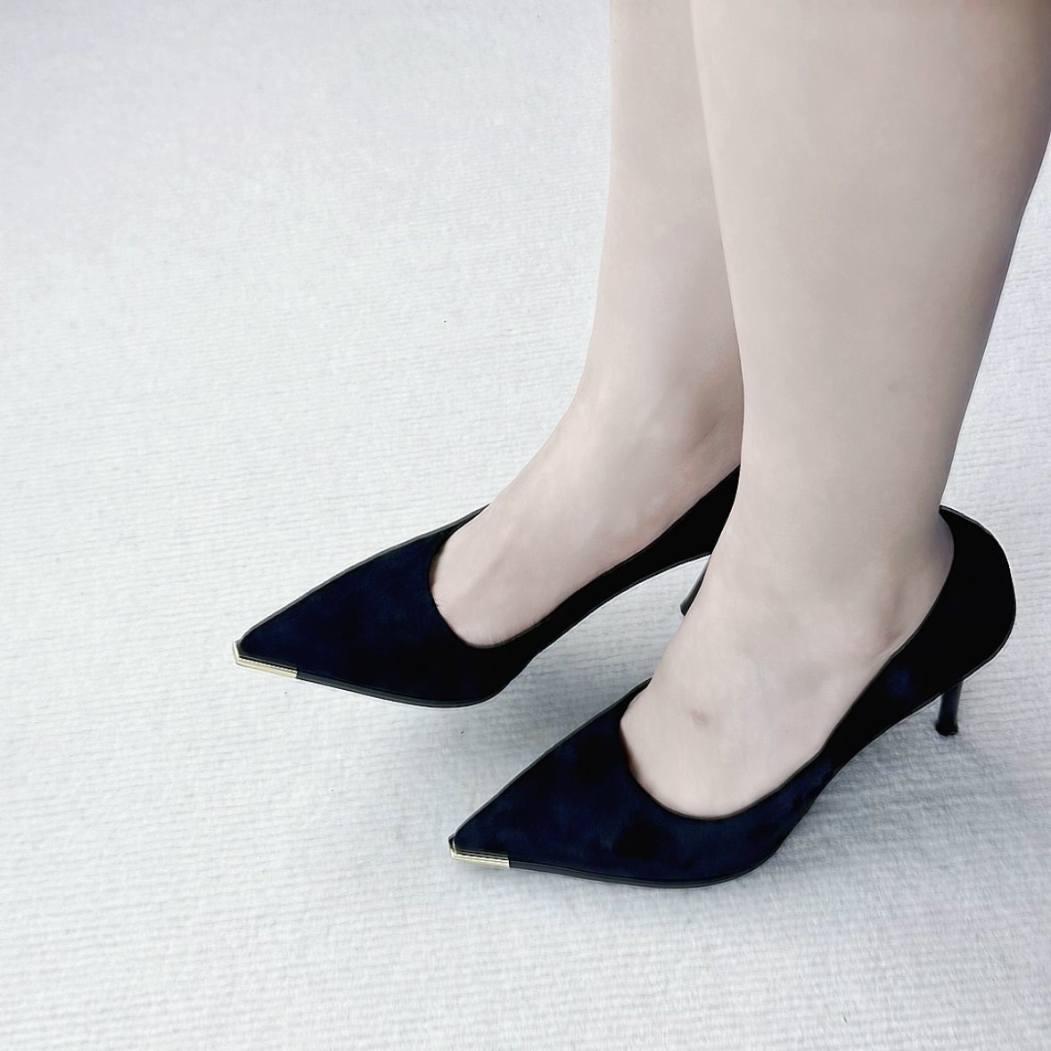 性感黑色绒面尖头高跟鞋女细跟浅口单鞋气质名媛风百搭职业单鞋