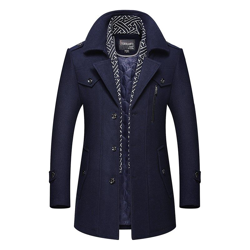 冬季中年男装羊毛呢大衣加棉外套西装领中长款男士围巾领呢子风衣