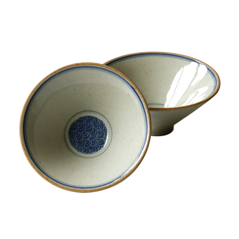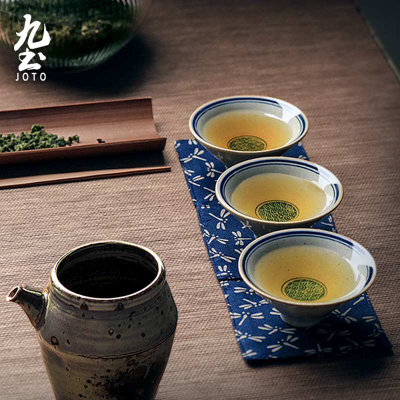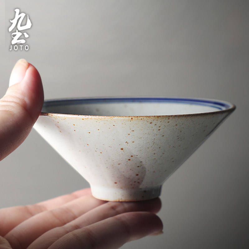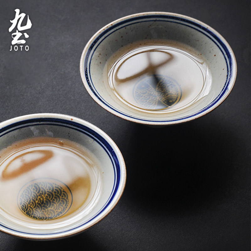 九土仿明代水波双鱼纹手工绘制斗笠主人功夫茶艺日式茶道品茗杯子