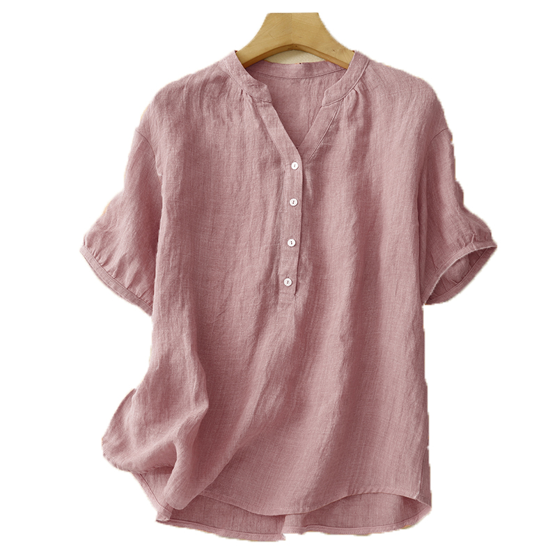 高端纯亚麻苎麻上衣女2025夏季新款女士妈妈夏装天丝棉麻短袖衬衫