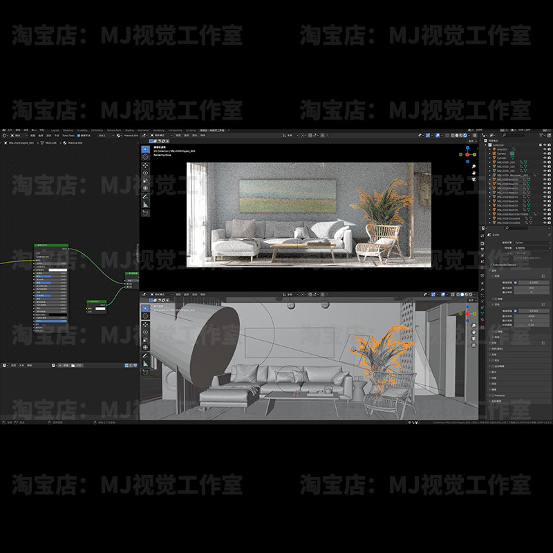 blender场景客厅沙发茶几椅子模型建模素材源文件渲染灯光材质393