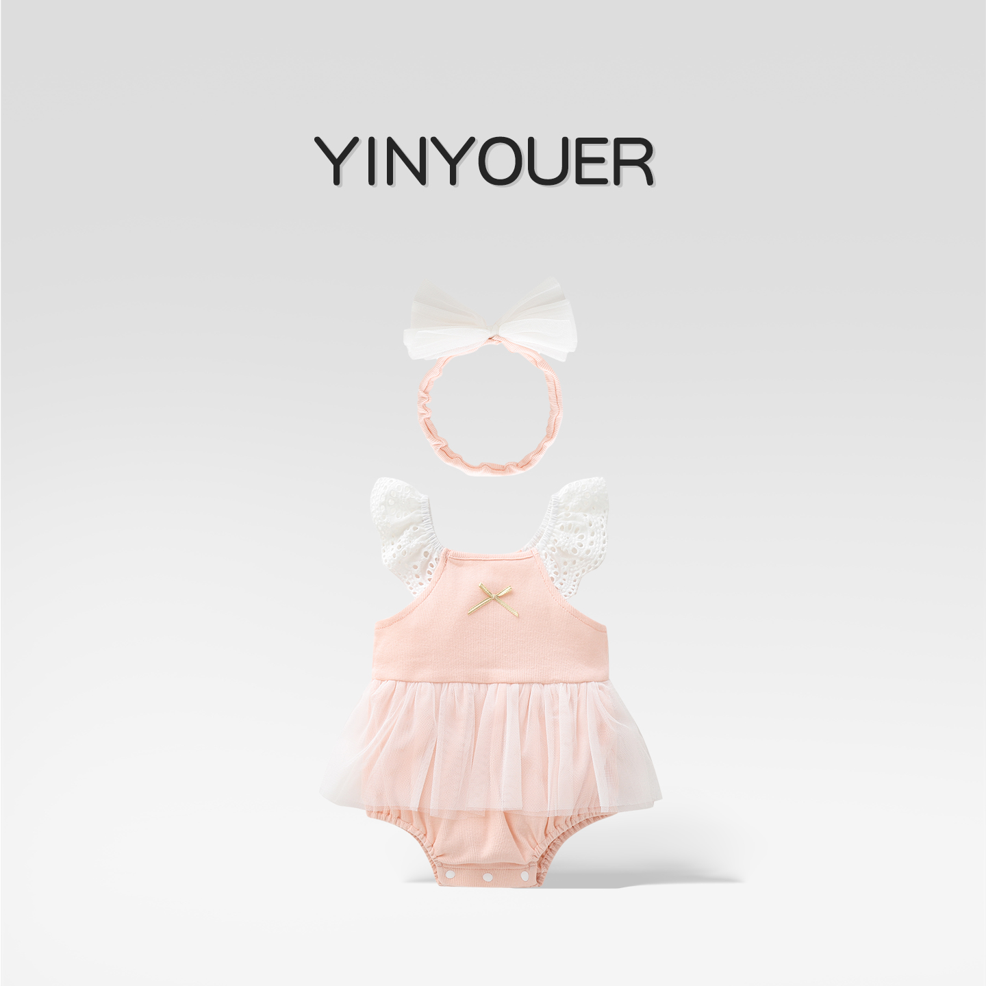 婴儿夏季吊带哈衣裙满月百天礼服