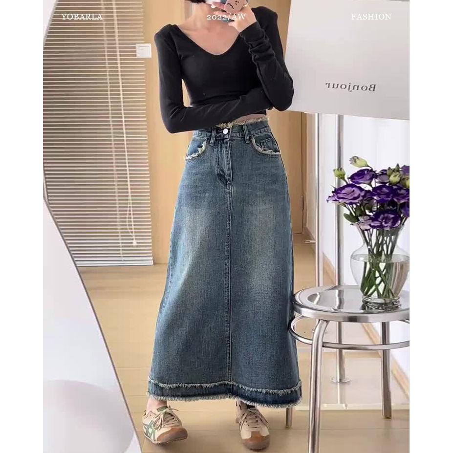 秋冬女装韩版批新款发时尚毛边做旧显瘦复古中长款高腰牛仔半身裙