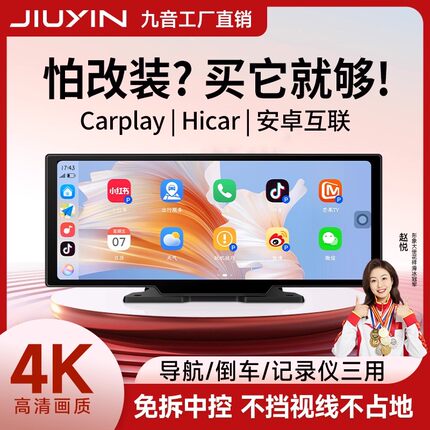 九音Carplay无线便携屏Hicar车载智慧屏导航仪高清行车记录仪