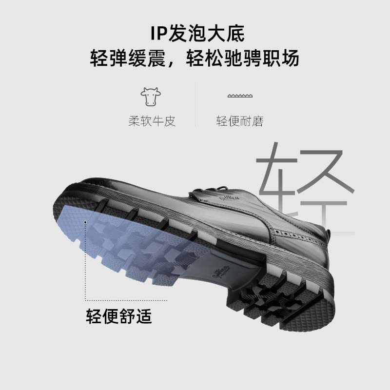 金利来皮鞋 秋季新款厚底德比鞋男士防滑耐磨正装商务真皮鞋增高