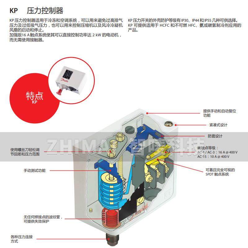 Danfoss丹佛斯 高低压控制器单压双压控KP1 KP2 KP5 KP15压力开关