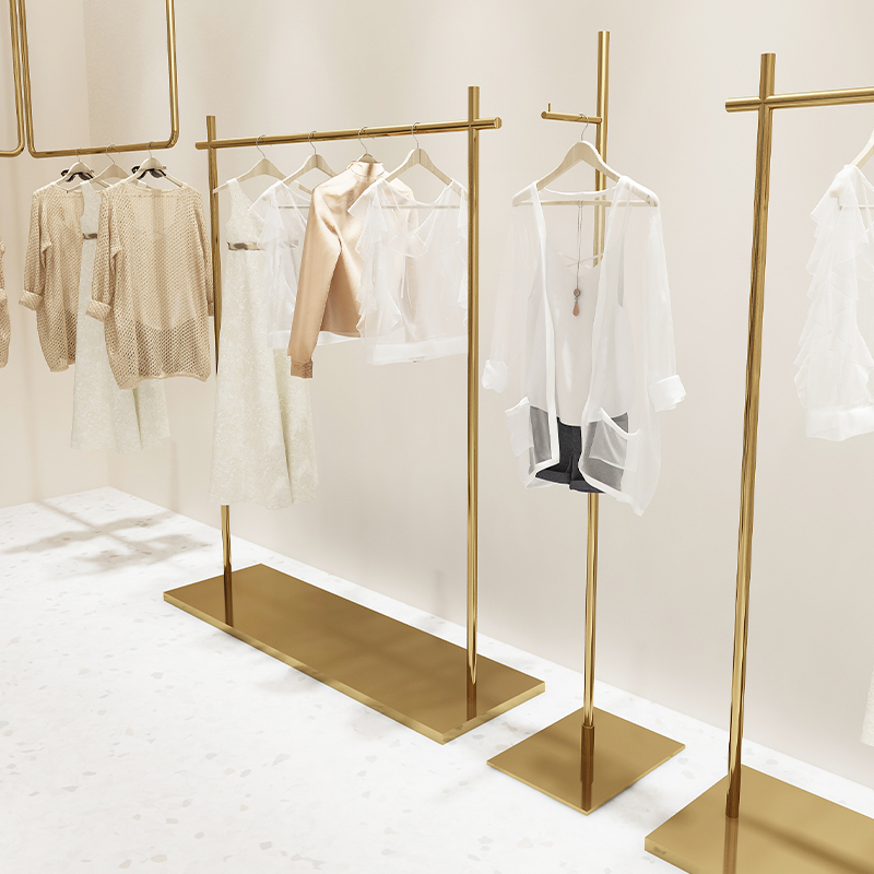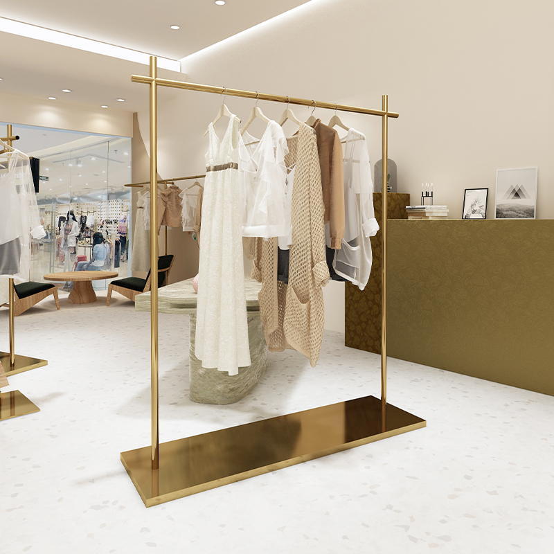 轻奢服装店展示架不锈钢电镀钛金挂衣架女装店落地式陈列架中岛架