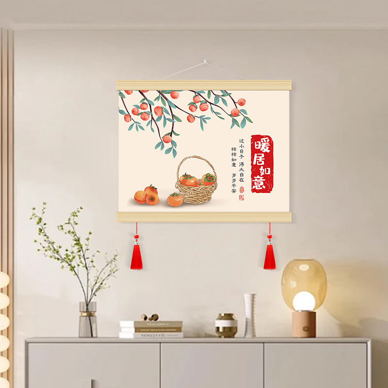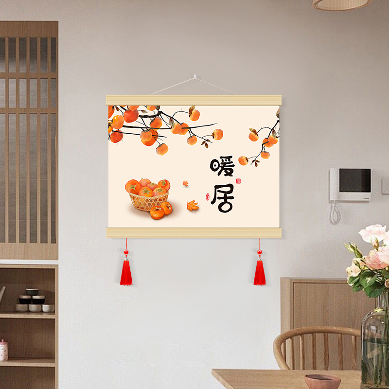 新中式柿柿如意暖居电表箱装饰画餐厅免打孔遮挡挂布配电闸箱挂画