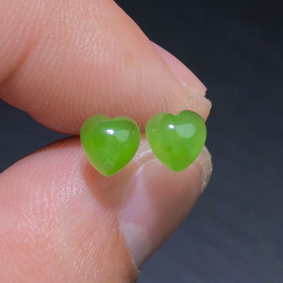 天然和田玉碧玉爱心耳钉苹果绿辣绿s925银耳饰女简约