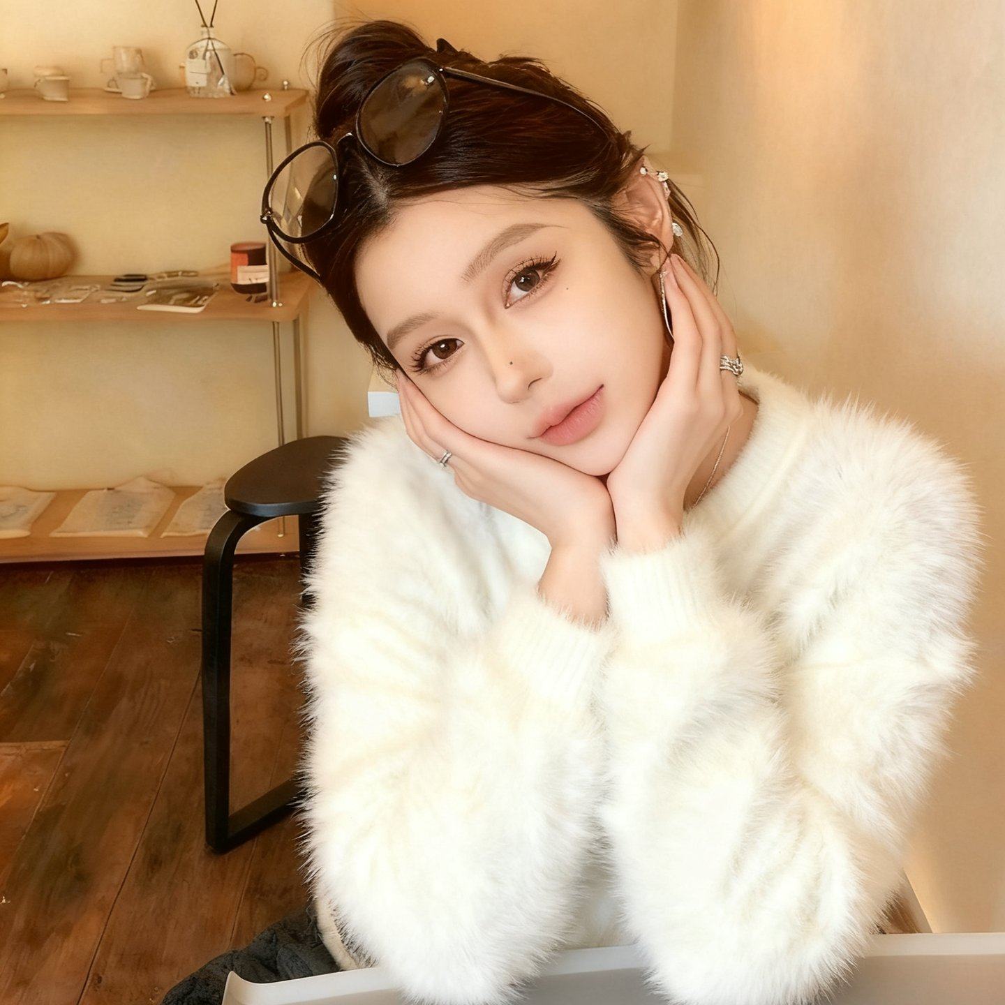 韩系白色毛衣女秋冬慵懒风宽松高级感圆领放貂绒套头软糯针织上衣