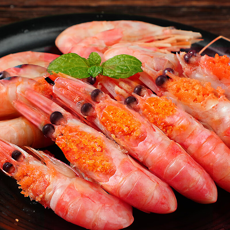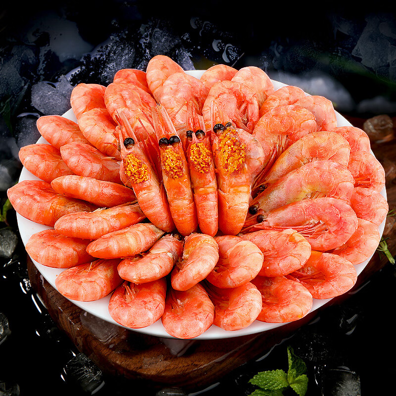 北极甜虾旗舰店北极熊北极虾刺身头籽生鲜特大号冰虾新鲜冷冻即食