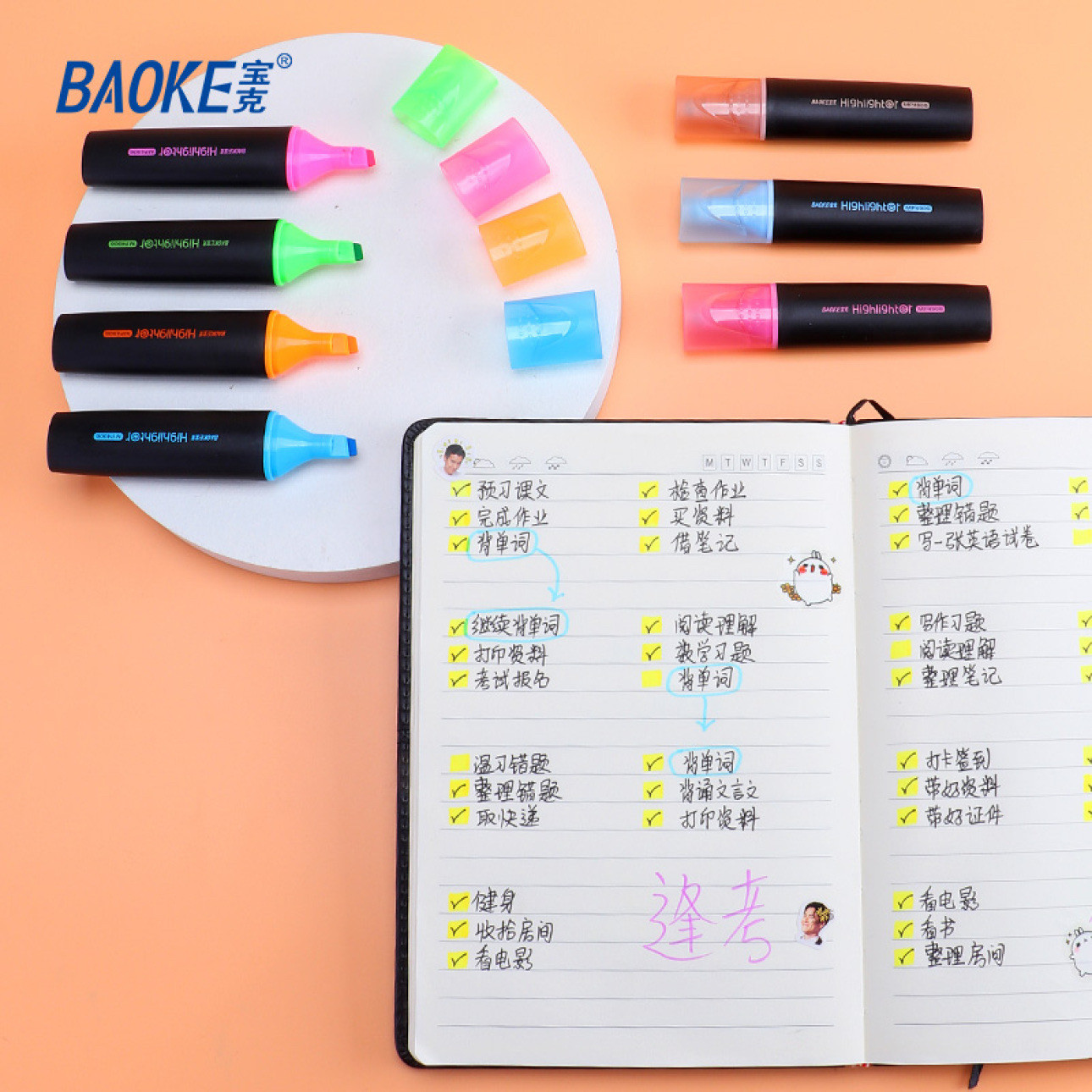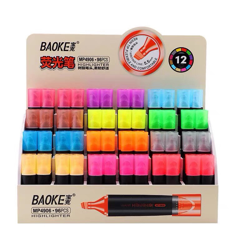 宝克荧光笔12色学生用彩色记号笔淡色系划重点划线标记笔1支包邮