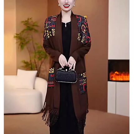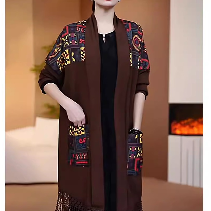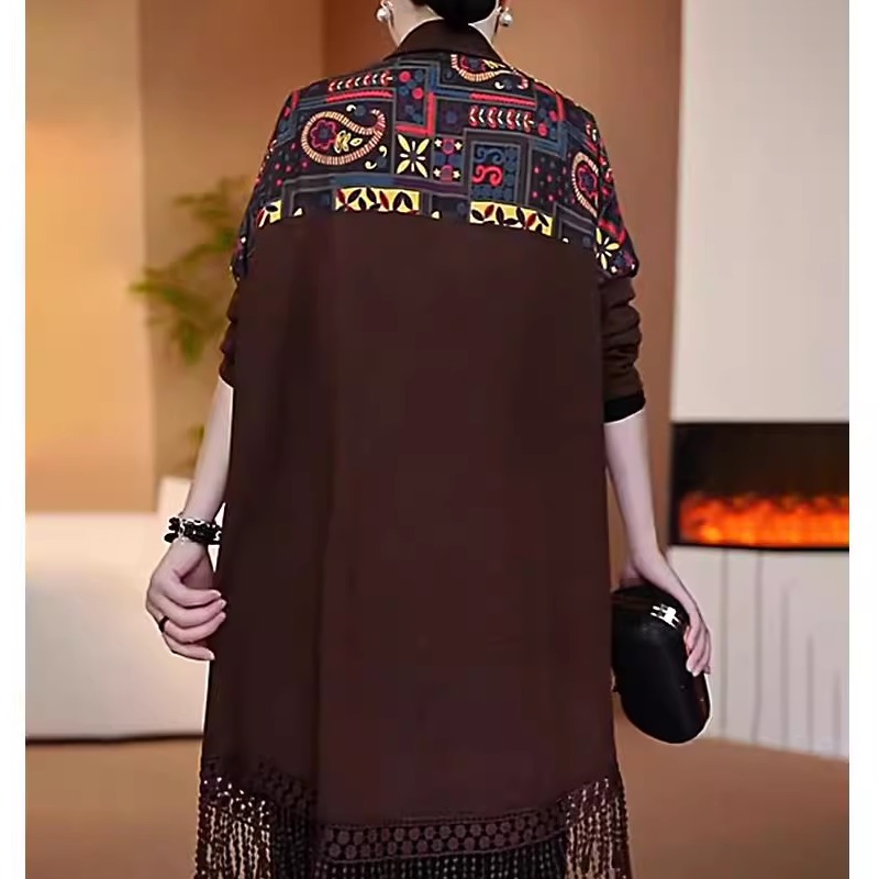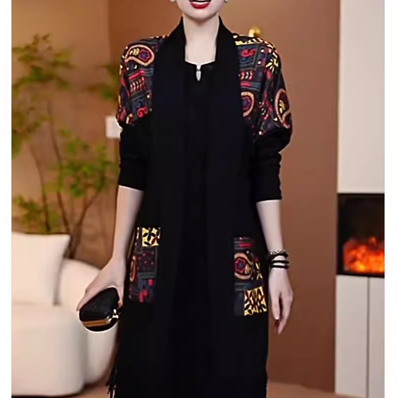 针织披肩开衫秋季新款时尚拼接洋气宽松弹力显瘦I休闲中长款外套