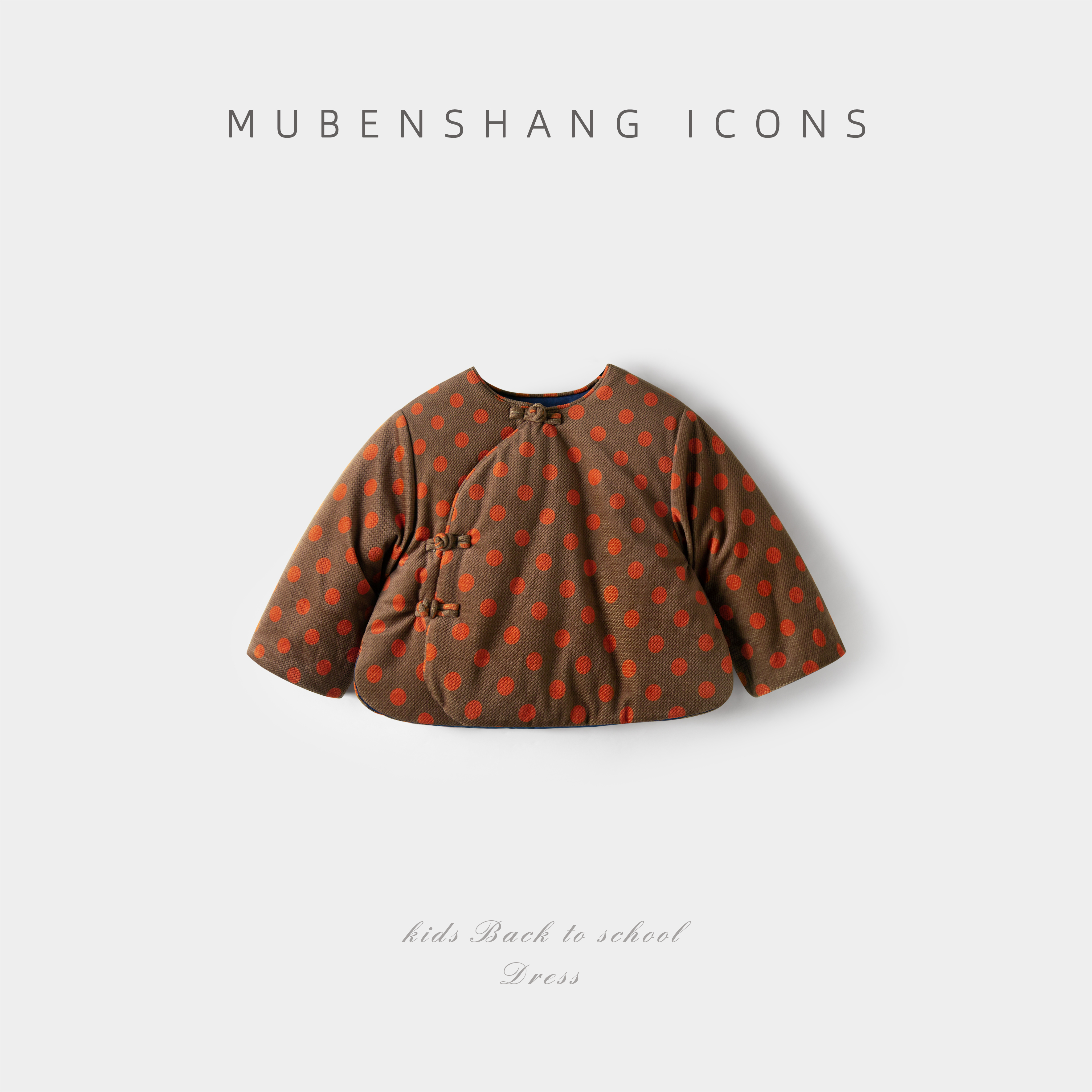 木本尚女童冬装外套国风唐装2025新款宝宝夹棉加厚刺绣波点棉服