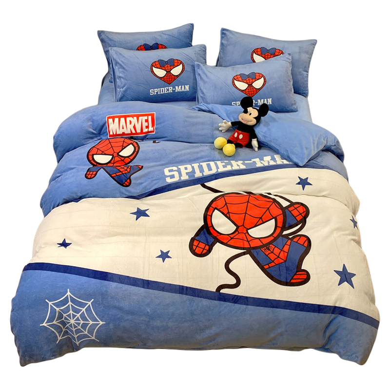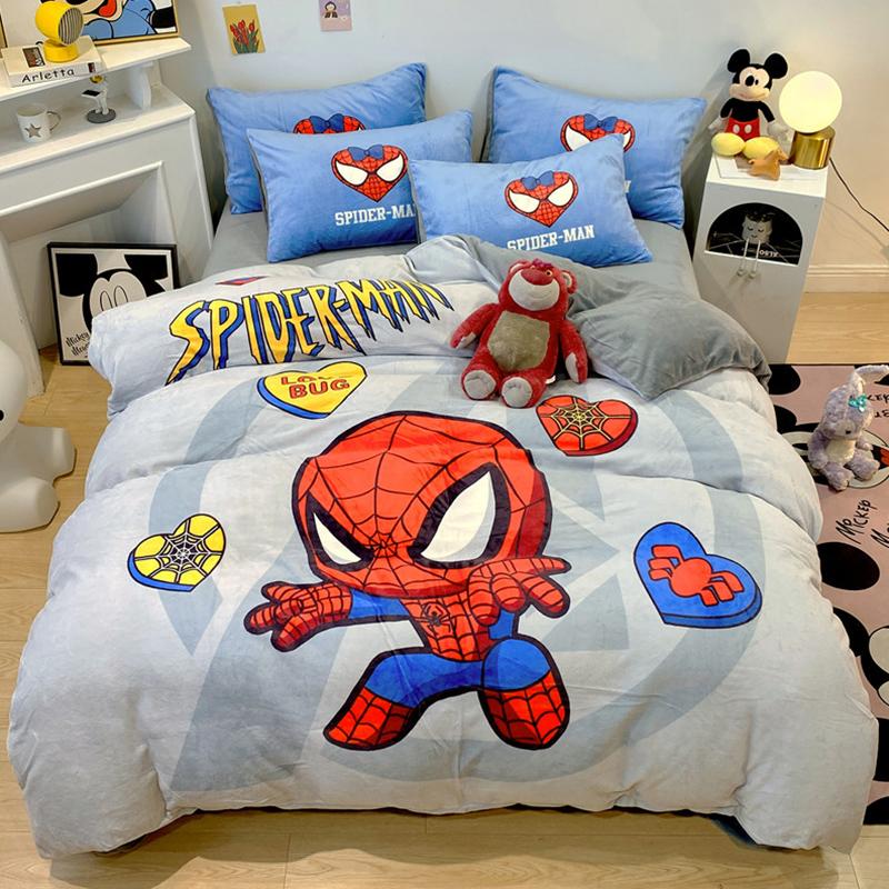 儿童牛奶绒四件套冬季保暖法兰绒被套3件套床笠0.9定制1.35蜘蛛侠
