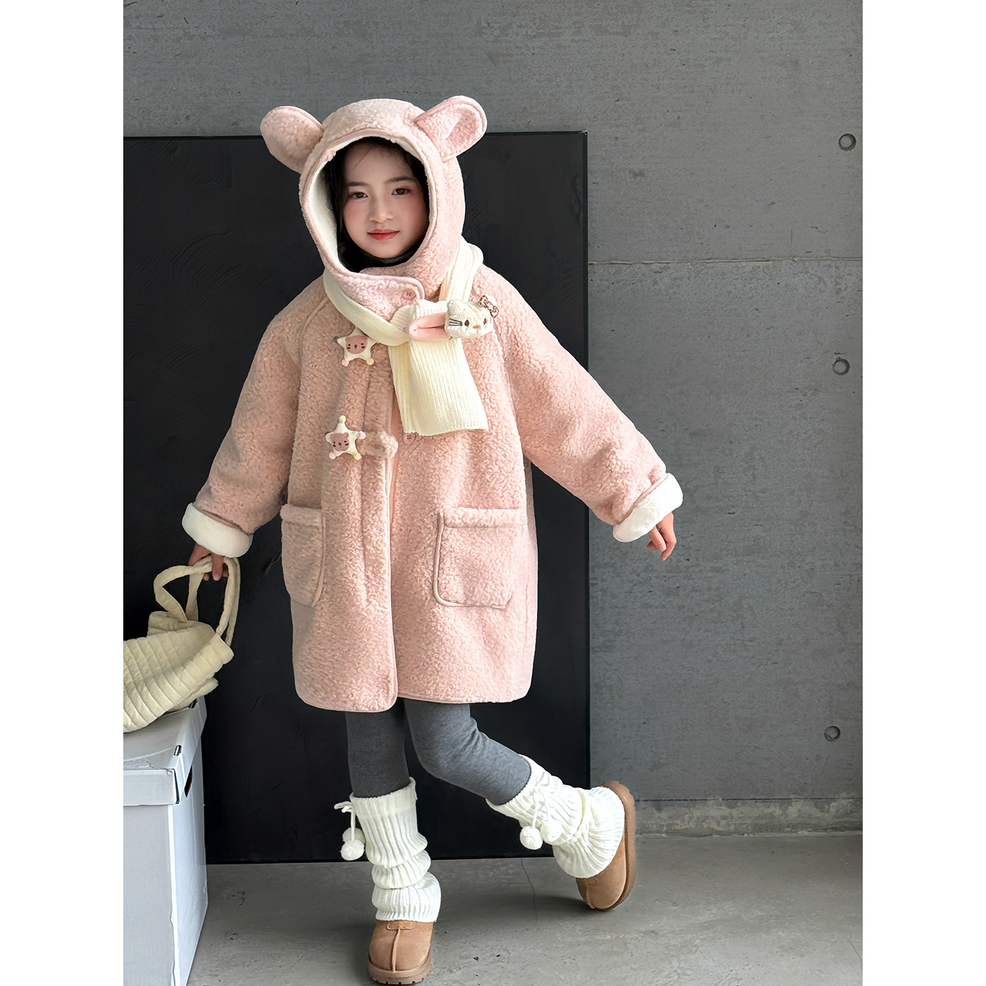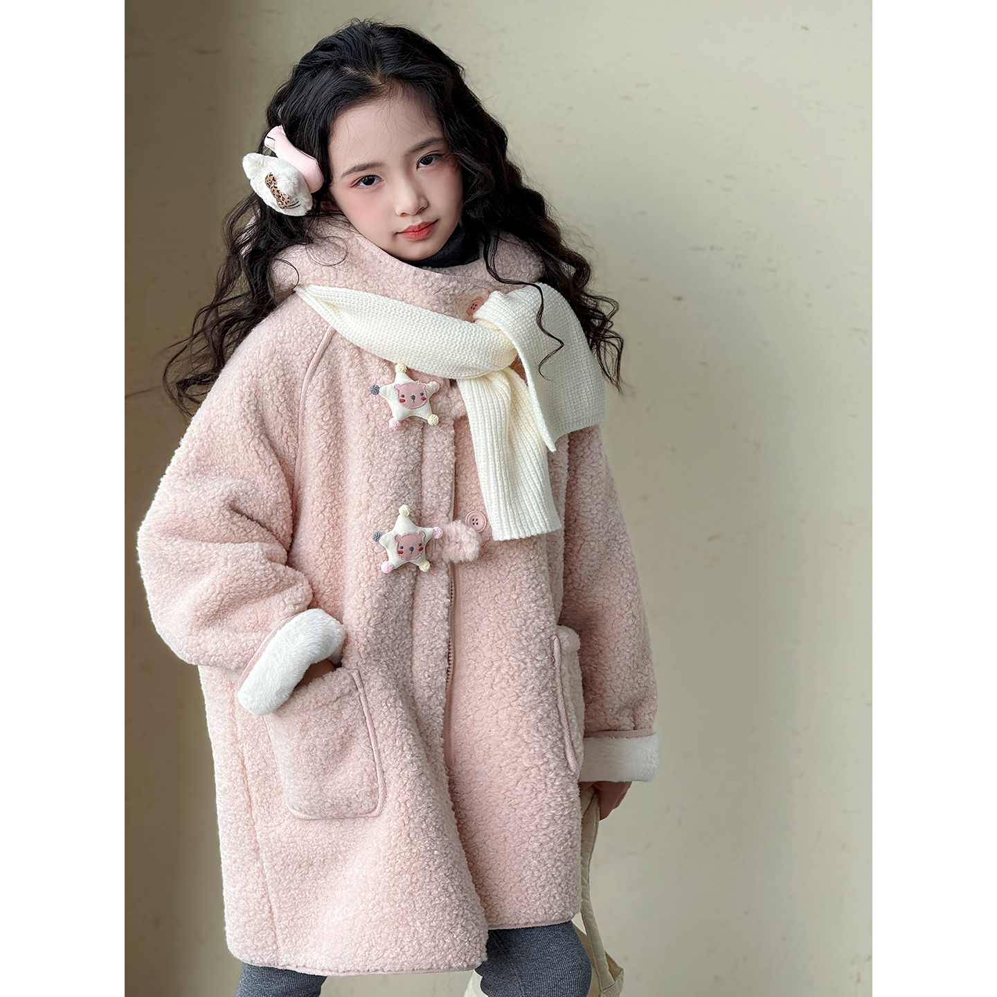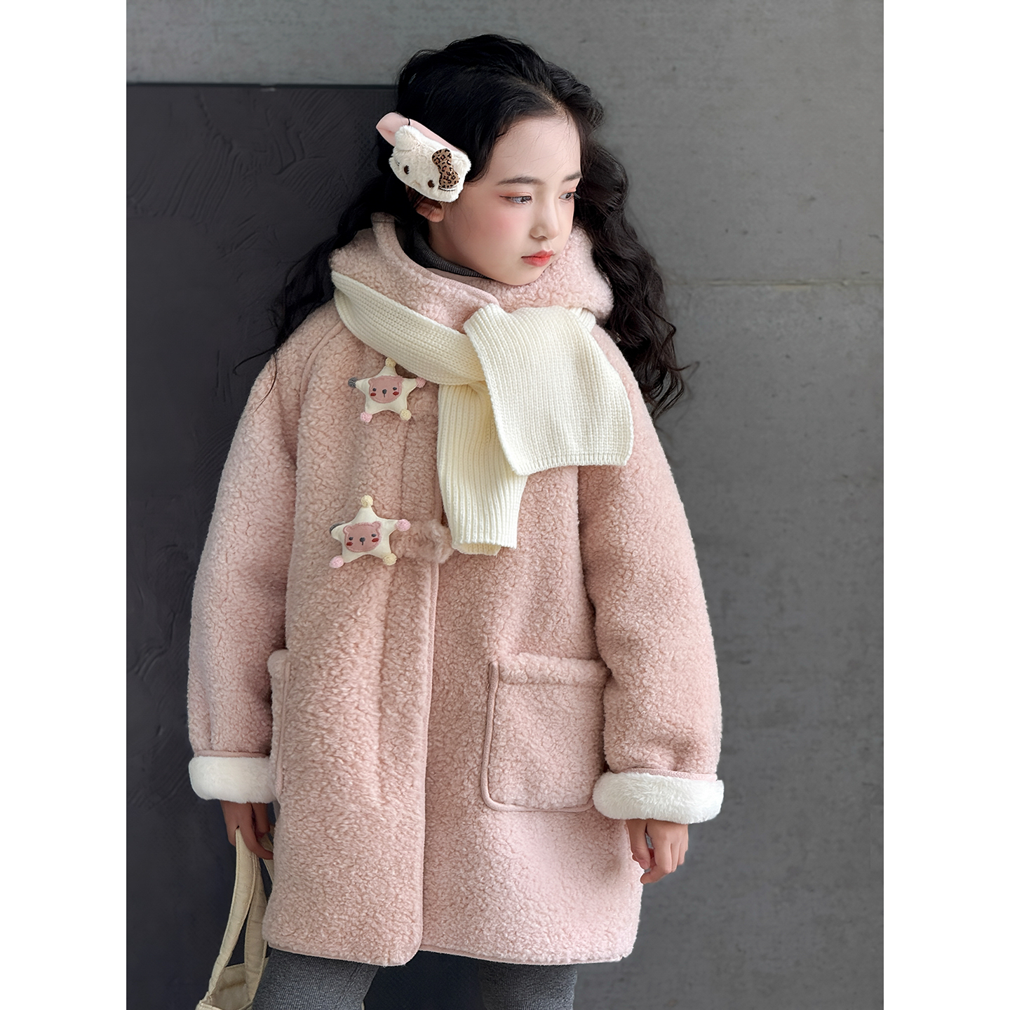 女童外套2025冬季新款儿童加厚保暖中大童冬装洋气连帽防风上衣潮