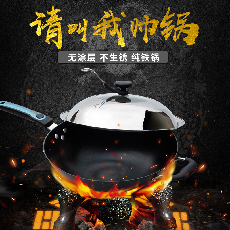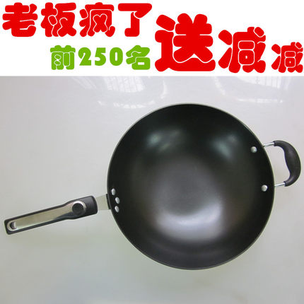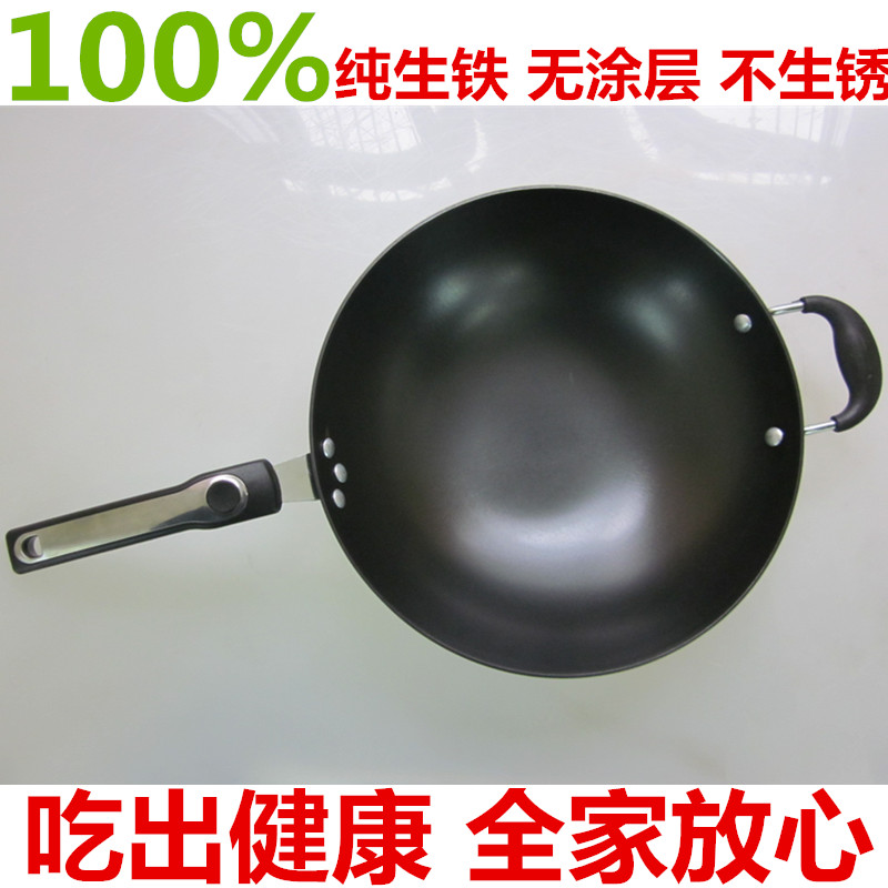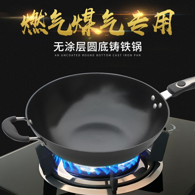 陆川铁锅铁人牌生铁锅圆底铸铁锅无涂层锅不粘锅不生锈燃气炉炒锅