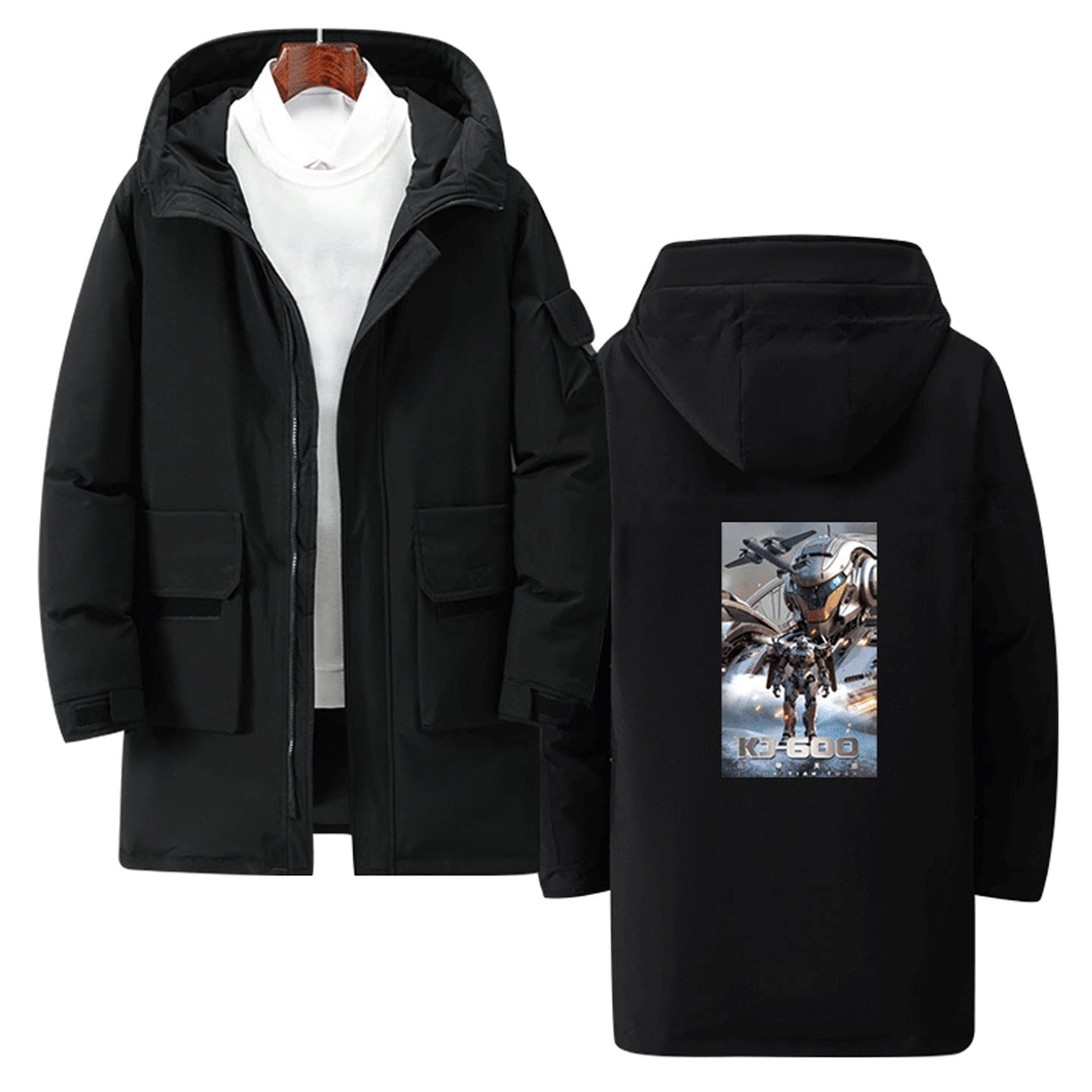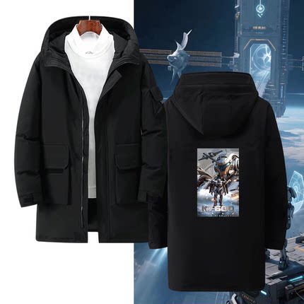 国潮动漫男女定制中长款羽绒服机甲纪元KJ-600变形战术机甲千里眼