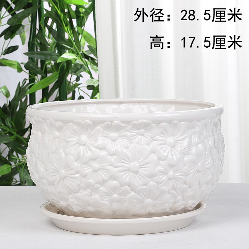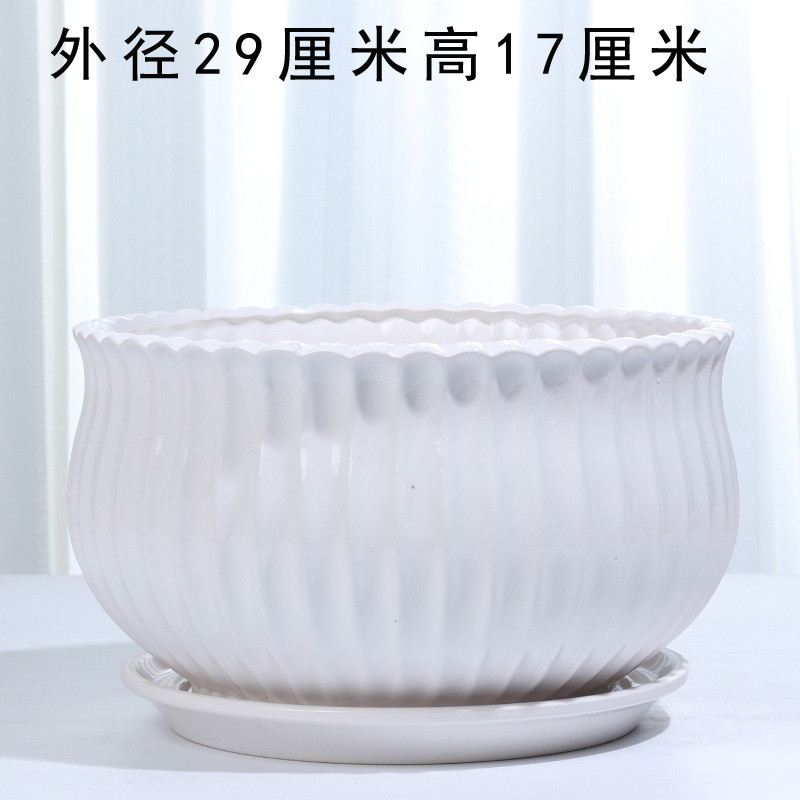 特大号白色花盆陶瓷带托盘阳台绿萝植物盆栽绿植花盆盆落地批发