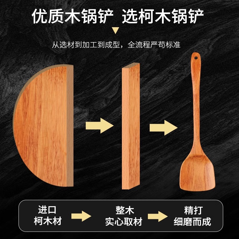 整木不粘锅铲木锅铲乌檀木铲子无烟锅铲长柄木铲厨具加厚汤勺饭勺