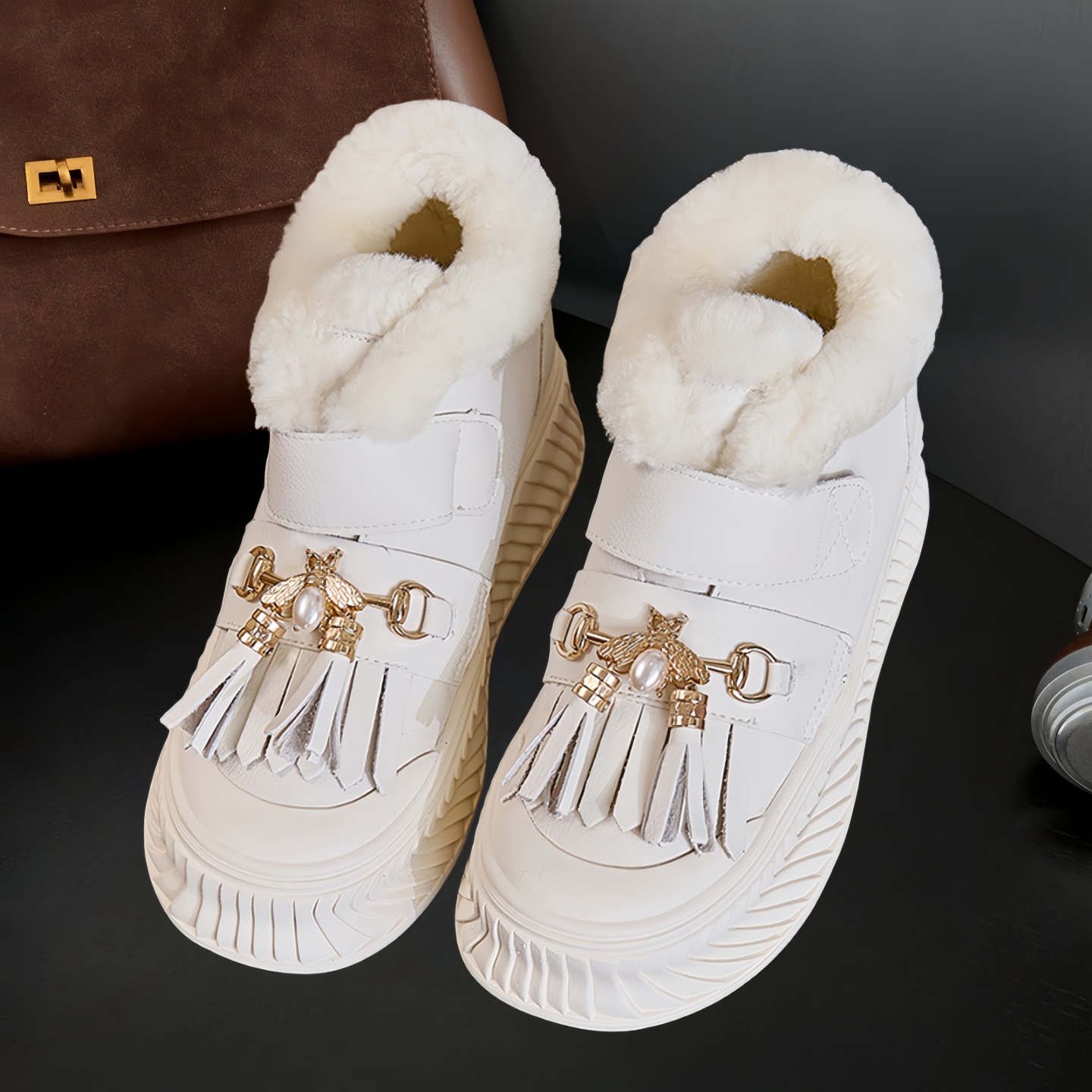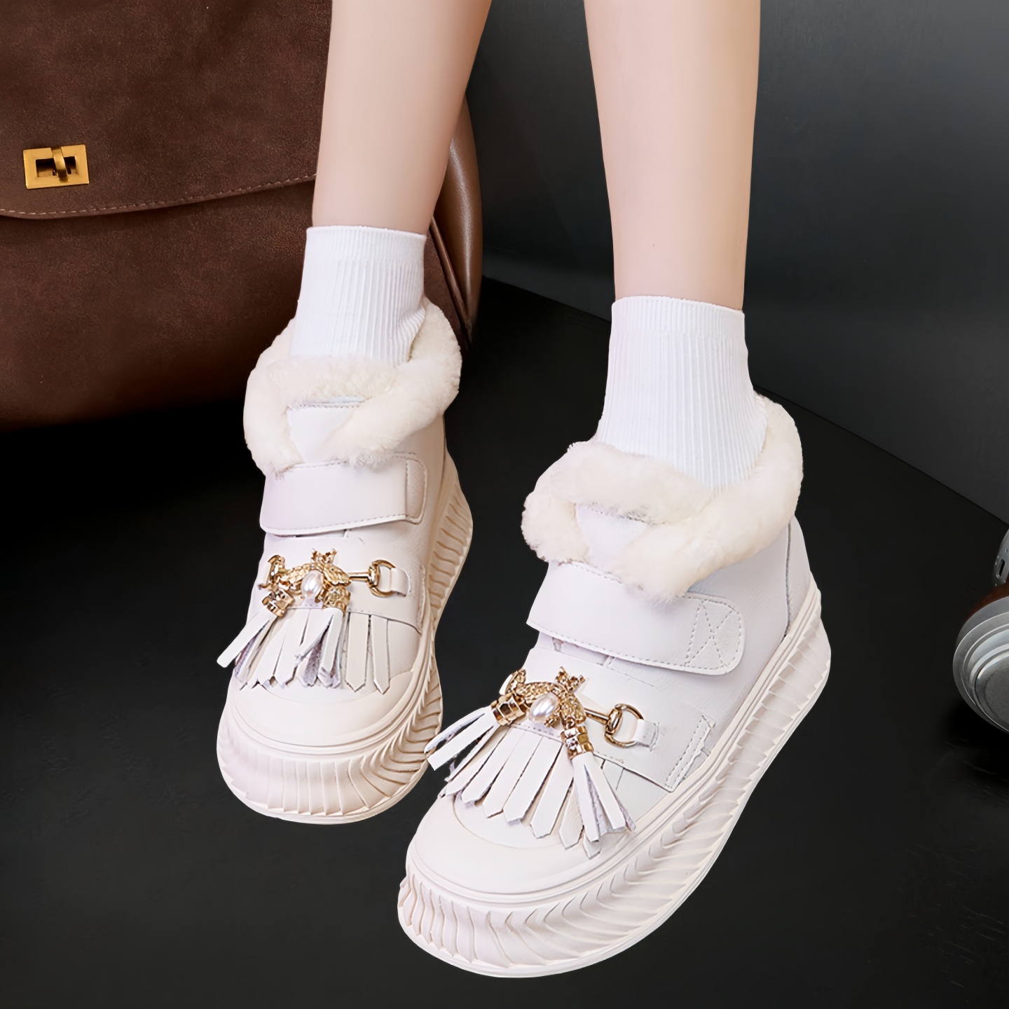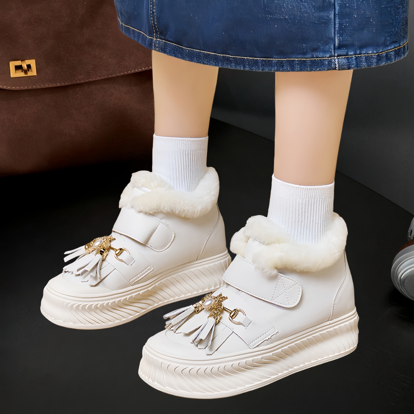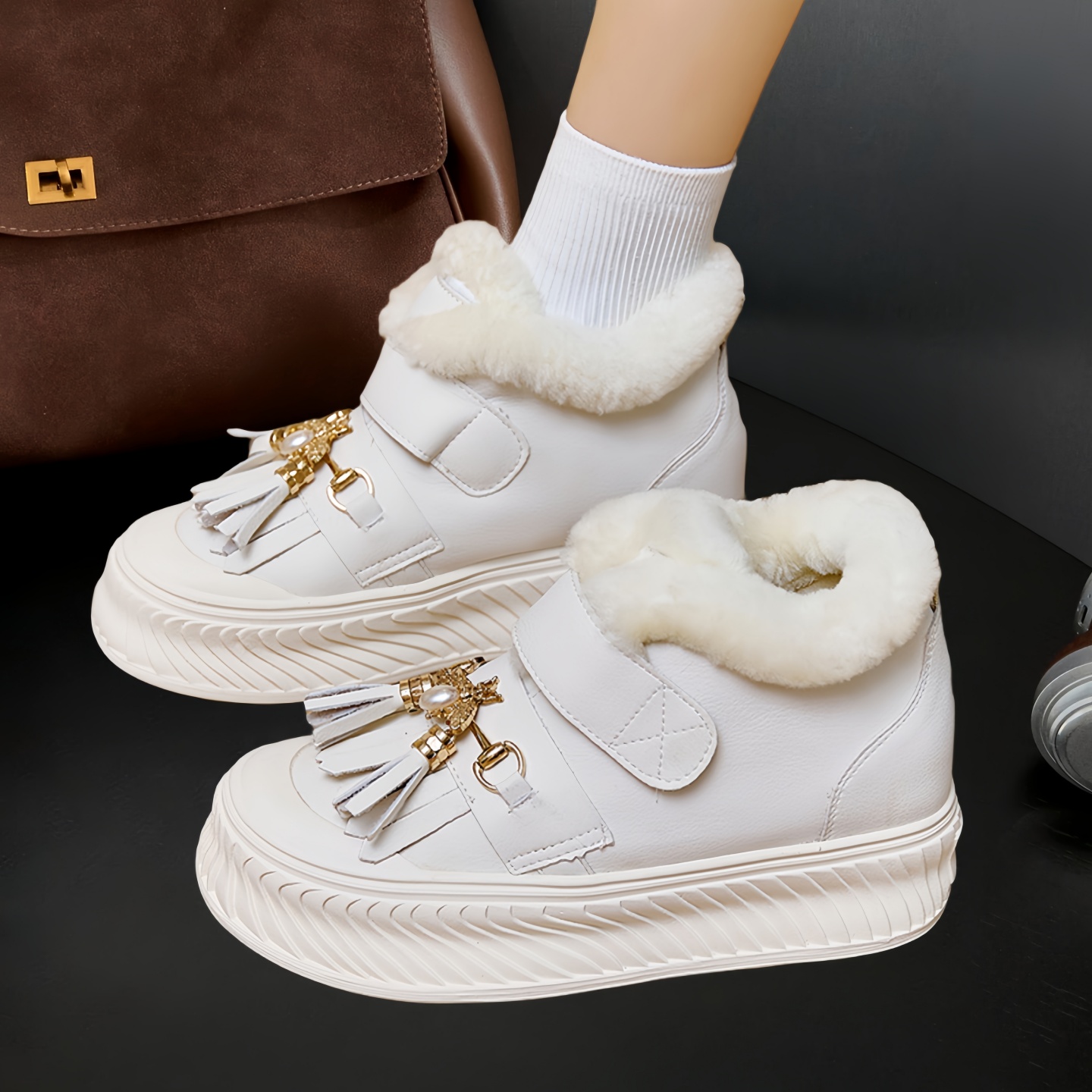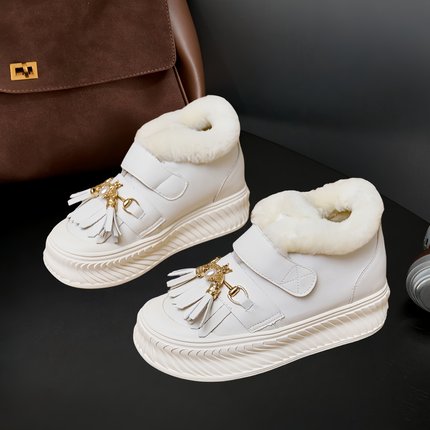 真皮内增高白色雪地靴女2025冬季新款魔术贴厚底松糕鞋时尚棉鞋子