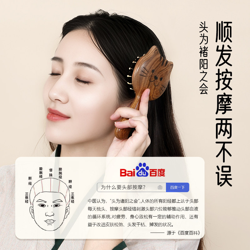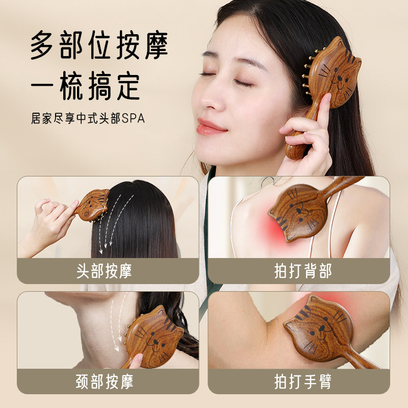 丰林猫咪按摩梳子头皮头部疏通经络专用头疗女士黄铜金丝檀木梳子