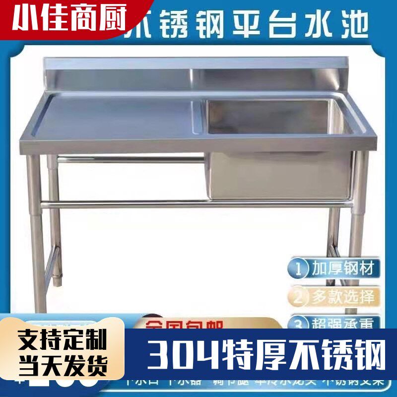 304加厚不锈钢水槽厨房商用饭店洗衣台洗菜盆带平台洗刷盆洗碗池