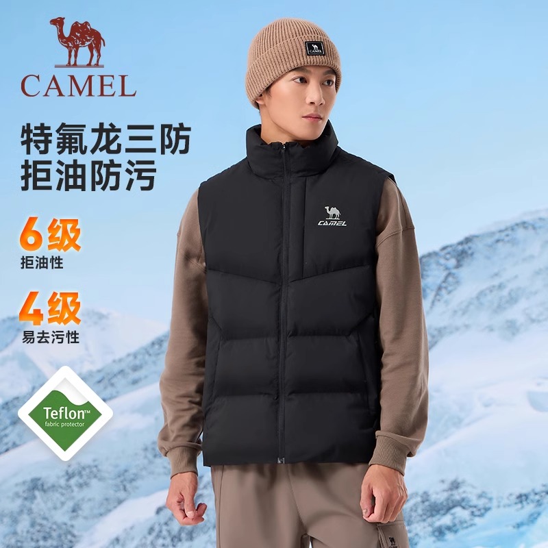 骆驼羽绒马甲男秋冬户外2025新款纯色简约百搭立领保暖背心外套女